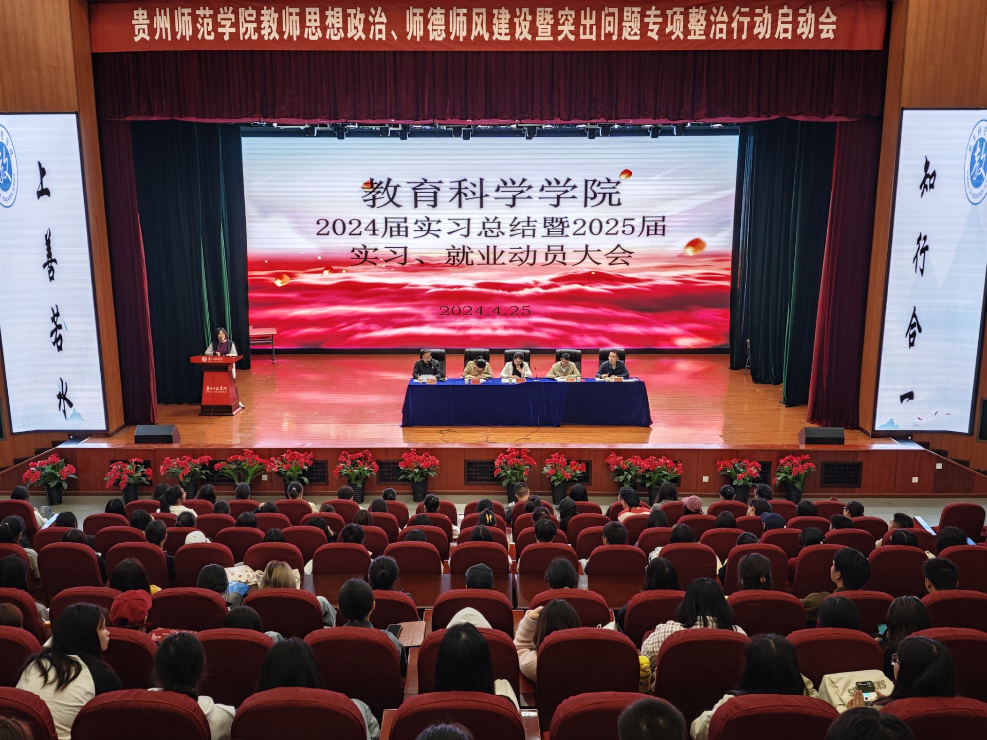 在逸夫楼演播厅举办了 2024 届实习总结暨 2025 届实习、就业动员大会,本次大会旨在总结 2024 届学生实习经验,同时为即将踏上实习岗位的 2025 届学生进行指导。本次大会由黎平辉副院长主持,全体院领导、系主任、辅导员(班主任)、实习指导老师、2021级全体学生、2020级学生代表参会。