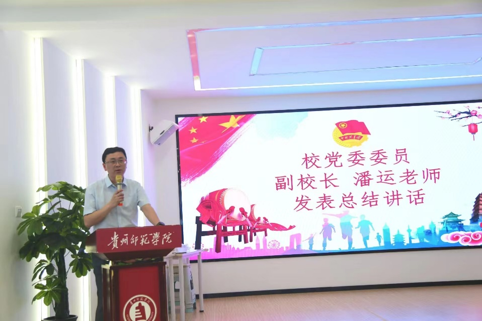 潘运高度评价了此次主题团日活动,并指出本次活动结合专业特色全面展现了艺术教育学生的专业素质。他结合自身的成长经历,寄语广大青年应缅怀先辈们崇高的爱国情怀和革命精神,勉励广大青年要在新时代发出青年好声音,肩负青年的使命与责任,为强国建设、民族复兴贡献青春力量。他教导同学们作为新时代的青年,要自强自信,感党恩、听党话、跟党走,珍惜当下的幸福生活;要树立正确的人生观、世界观和价值观,历练自身的意志品质;要强化实践锻炼,学好专业知识和技能,将专业知识技能运用于实践中;要结合自身的实际树立目标,脚踏实地的学习,为国家、为社会做贡献。最后,潘运祝同学们健康、勤奋、有个美好的未来发展。