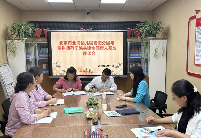 党委书记肖湘萍、院长宋万琚与学前教育系主任娄小韵、教师陈泽婧一行四人来到北京市北海幼儿园贵阳分园,与幼儿园党政领导就签订协同育人合作协议相关事宜进行了深入交流。此次会议旨在深化校企合作,共同探索创新人才培养模式,促进教育资源共享与互补。