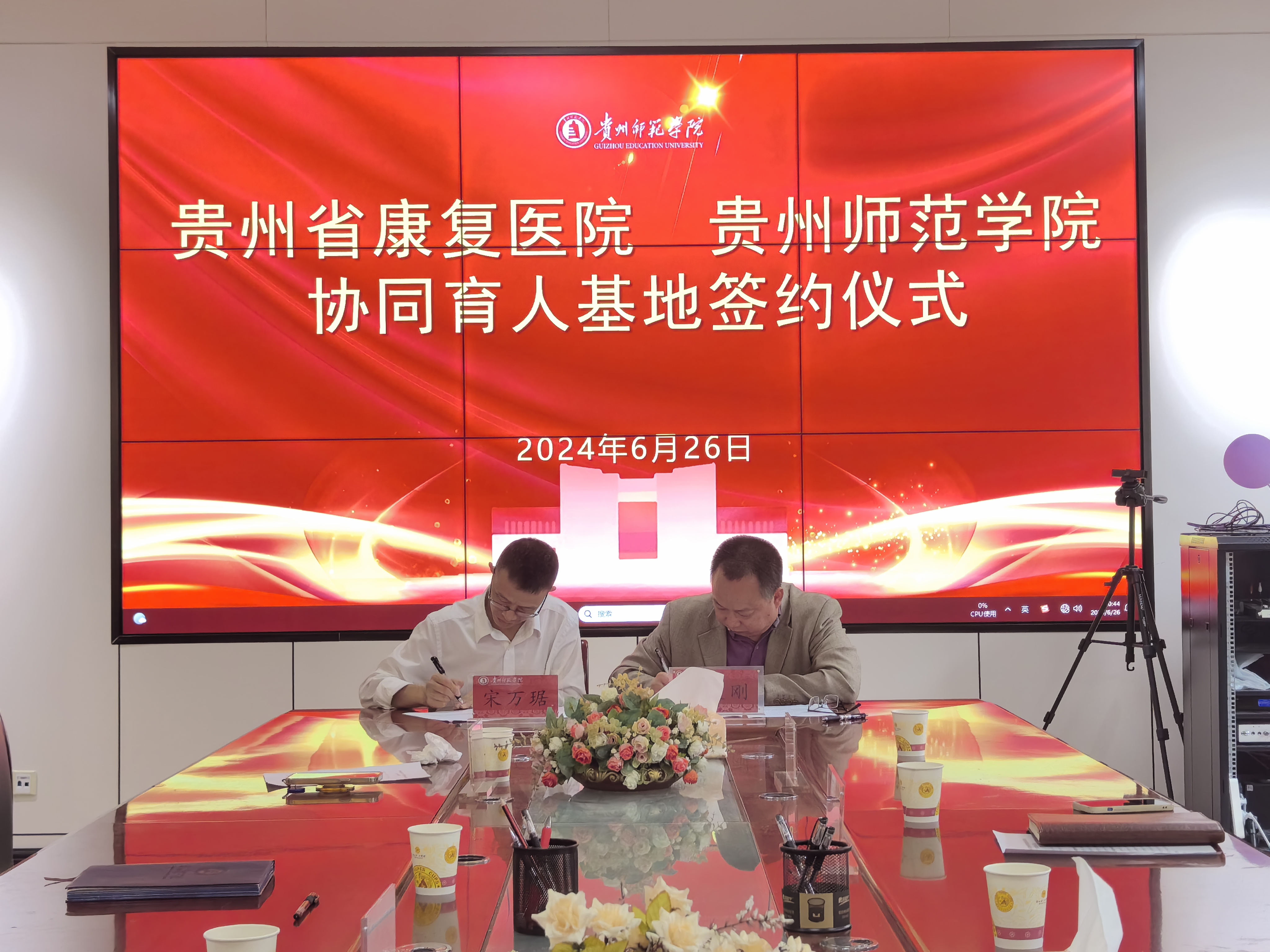 会议最后,杨大刚和宋万琚代表双方签订了协同育人基地合作协议。会议指出,双方将持续深入交流研讨,不断理清合作目标、框架和思路,共建合作体制机制,共享合作发展成果,共同推动残疾儿童康复和特殊教育事业等高质量发展,服务好残疾儿童和地方发展。
