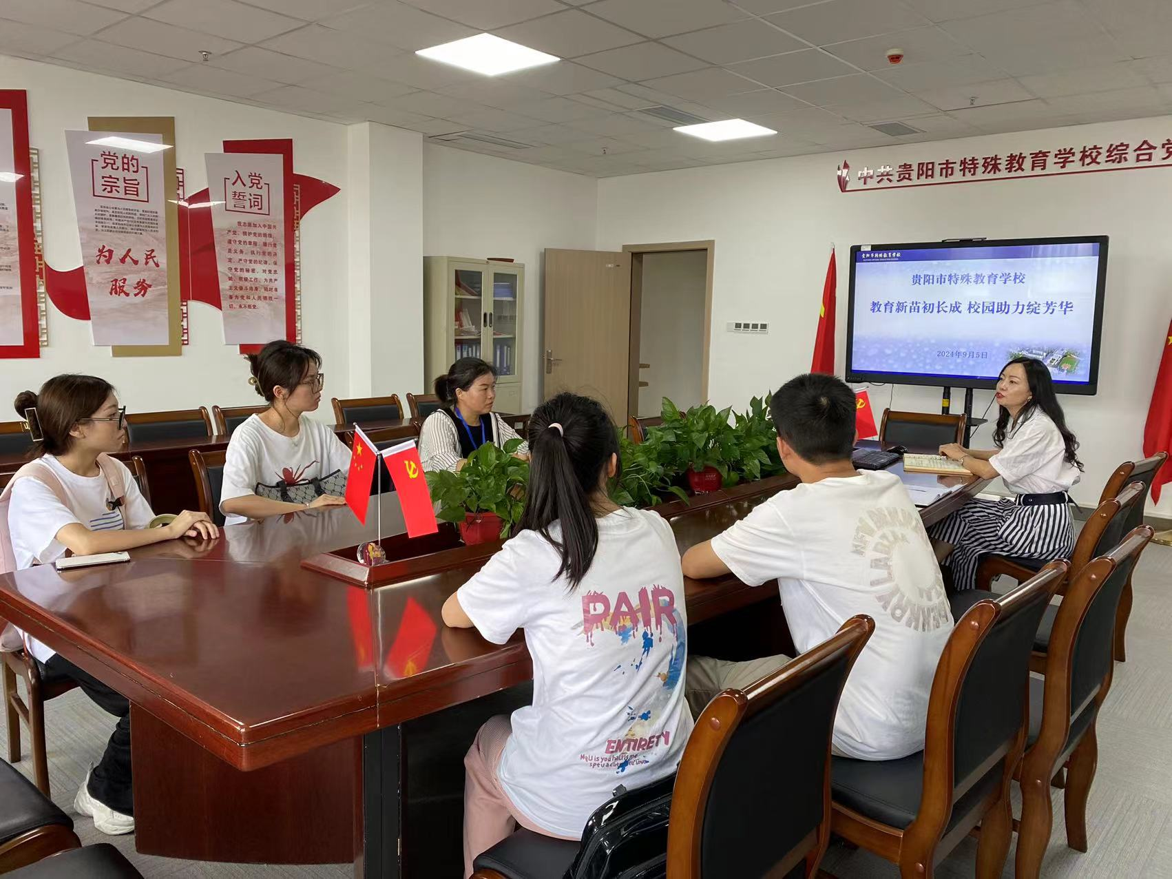特殊教育专业2025届的学生霍雨菲、蔡家颖等4名实习生在罗艳华老师的带领下一行人出发前往贵阳市特殊教育学校开展实习工作。上午11点在贵阳市特殊教育学校三楼会议室召开了“贵州师范学院-贵阳市特殊教育学校2024年实习工作部署暨实习单位指导教师培训会”。参加见面会的有贵阳市特殊教育学校邹永红主任、教务处毛老师、贵阳市特殊教育学校承担2024年实习指导任务的所有教师、贵州师范学院实习带队教师罗艳华以及全体实习生。