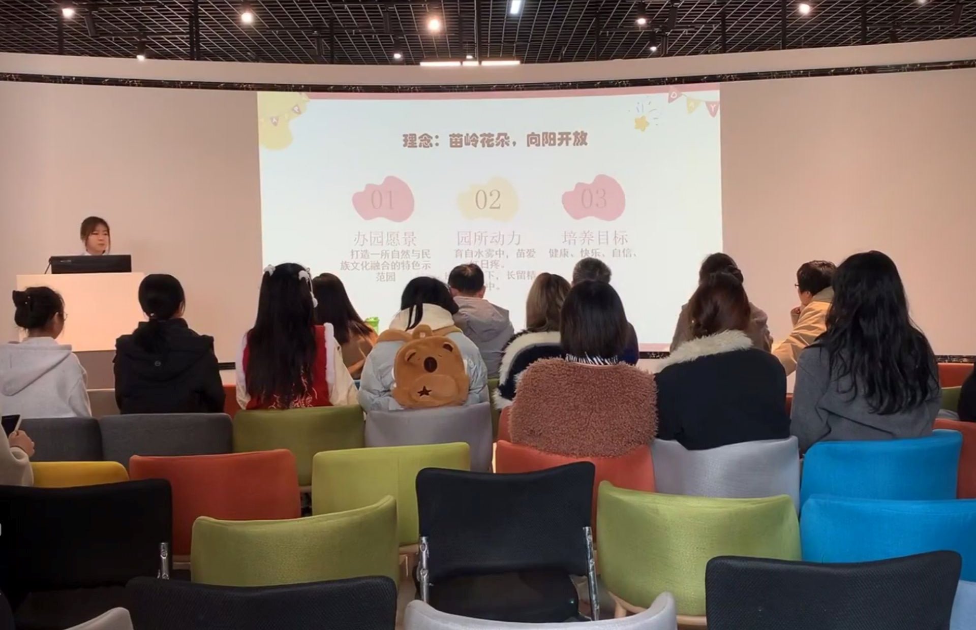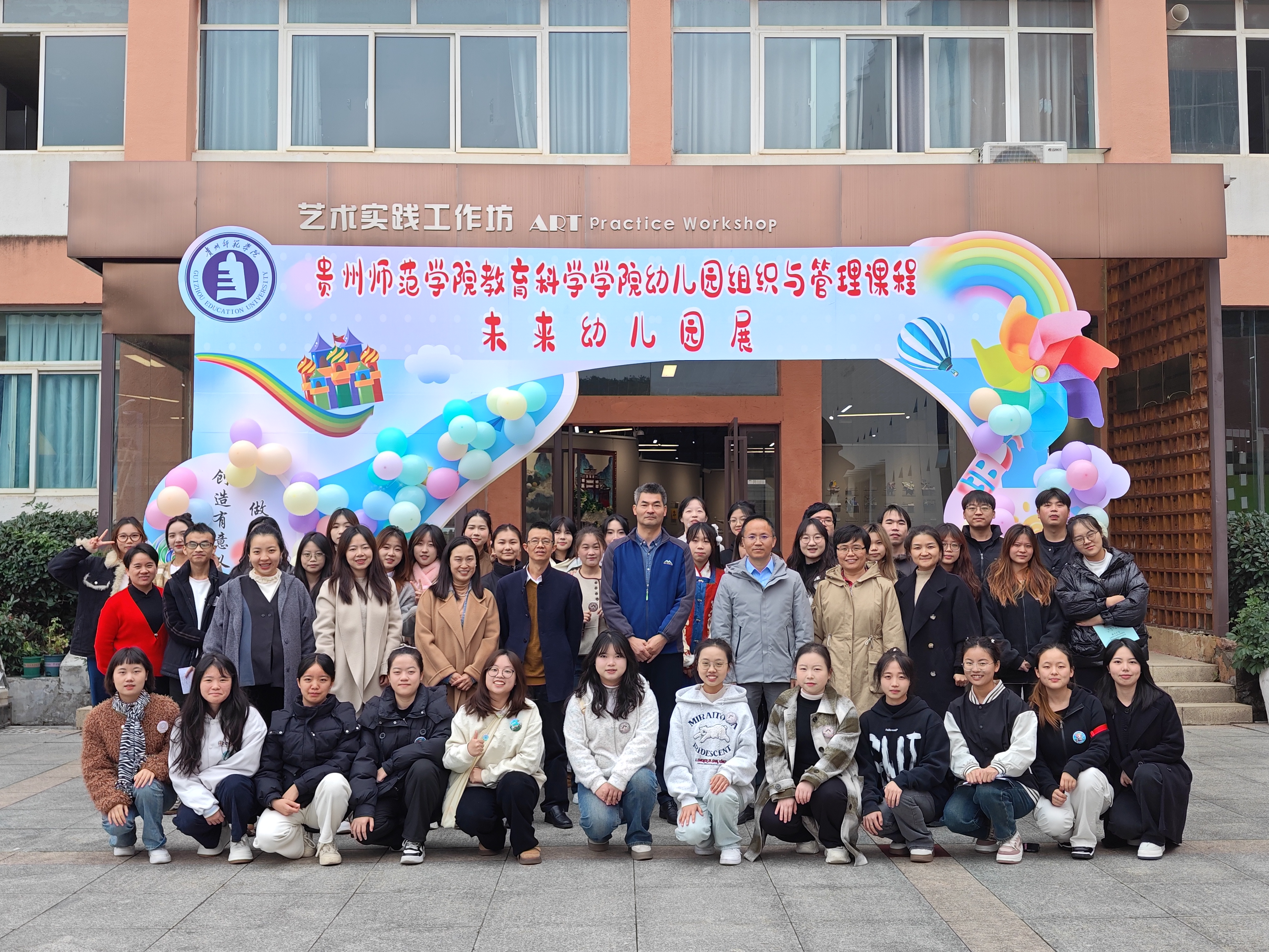 副院长黎平辉致辞,对此次活动及相关课程改革寄予厚望,为活动拉开了序幕。紧接着,课程实践导师之一云岩区第十二幼儿园骆志琴园长分为我们回顾这三年作为课程实践导师的一些工作及感受,从一线教育者的视角,为在场师生带来了极具价值的经验与思考。随后同学们对课程成果进行展示,同学们将理论知识与实践创意相结合,生动地呈现了幼儿园从环境布局到课程设计、从人员管理到活动组织的多方面构想与成果,充分展现出对《幼儿园组织与管理》课程的深刻理解与灵活运用。然后课程负责人郑玉莲博士进行《幼儿园组织与管理》课程改革实践反思分享,讲述课程教学改革的历程,介绍了课程在线上与线下融合、理论与实践融合、课内与课外融合的具体做法,通过建构强大的实践学习支持系统,为学前教育专业学生提供多元学习平台,打造多元学习机遇。