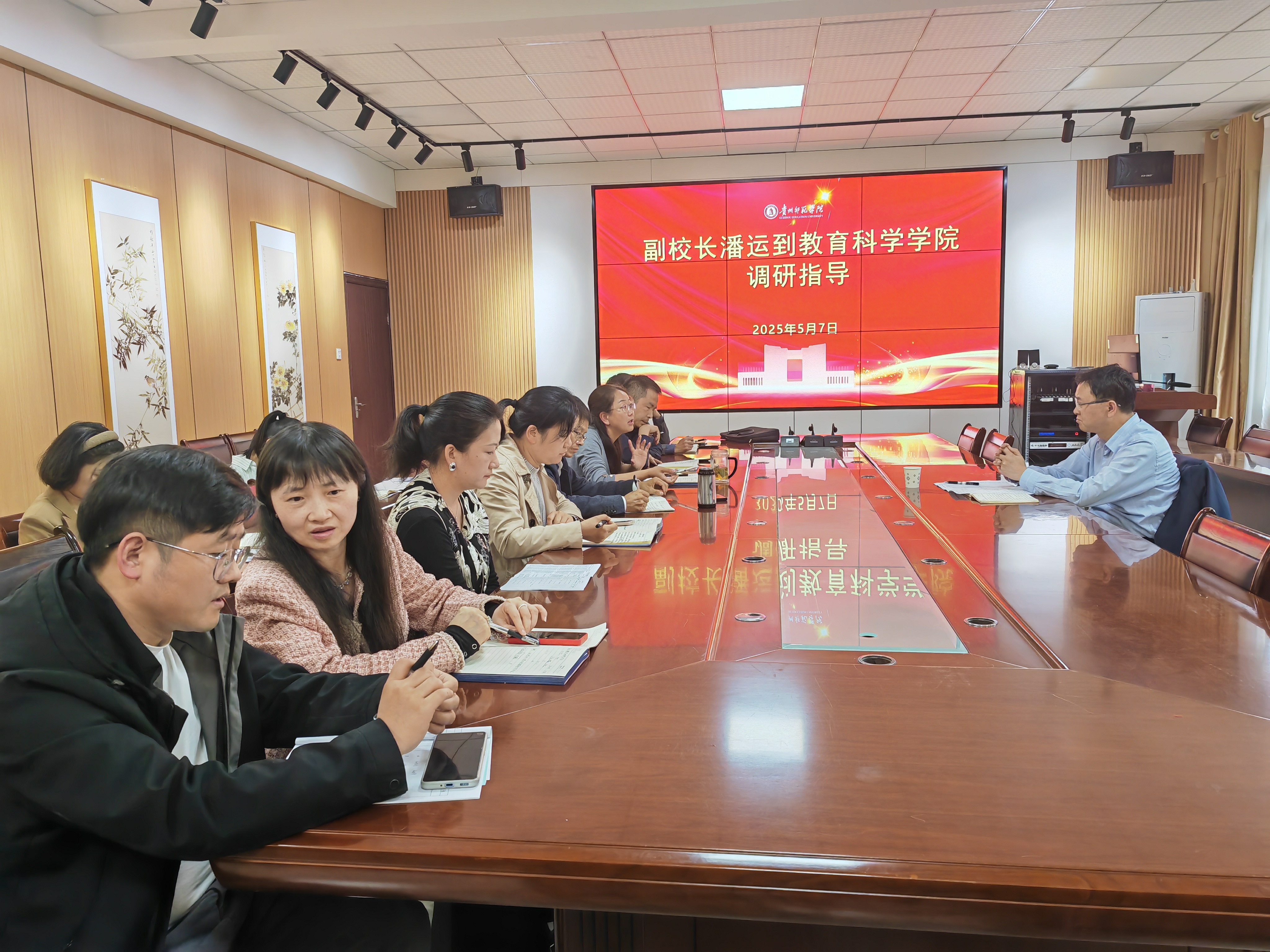 潘运在认真听取学院汇报基础上,就学校5月6日2025届毕业生就业工作推进会精神和要求做了传达,对学院在学生职业生涯规划等方面的做法和经验给予了肯定。他强调,学院领导班子要高度重视,充分认识到就业工作的重要性,切实增强紧迫感和责任感;要以更高站位和系统思维对就业及考研进行谋划,围绕“学生发展”形成“招生-培养-就业”系列举措;要团结带领全院师生共同发力,切实加大投入,增强支持保障,持续加强学风建设,进一步优化人才培养方案,推动实习实践改革,提高人才培养质量。