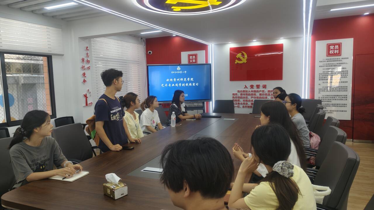 2025年9月2日上午9点,龙雪梅老师带领艺术教育专业12名同学到贵阳市云岩区第一小学分校区实习报到,并召开云岩一小实习指导教师培训交流会。