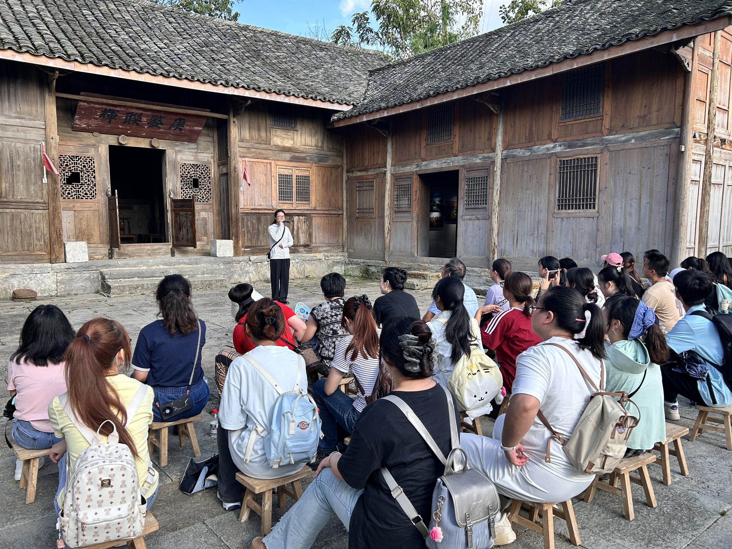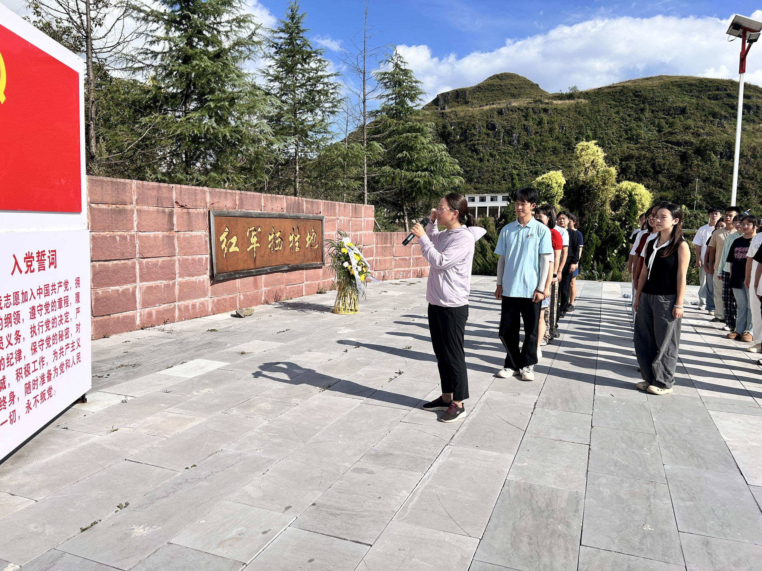 本次活动在庄严肃穆的氛围中开始。师生们第一站抵达红军牺牲地,聆听现场宣讲《先烈们用生命换来我们的诗与远方》,并举行缅怀仪式,集体默哀、敬献鲜花,接着由肖湘萍带领全体师生重温入党誓词,深刻感悟革命先辈坚定的理想信念与英勇献身精神。随后,师生们沿着红军曾经走过的道路,经拥军坟、红军居住地、六方井等红色遗址,一路聆听讲解,体验长征艰苦历程。在居住地区域,宣讲员动情讲述《三双鞋子·映初心》的故事,透过红军战士物资匮乏仍信念不改的细节,生动映照出共产党人的初心使命。沿途,师生们认真观看红军标语和漫画,参观兵临贵阳陈列馆,透过一件件实物、一张张图片,系统了解了红军长征途经贵阳的历史背景和重大意义。活动最后,师生们在红军餐厅体验了一顿具有革命传统意义的晚餐,进一步体会到当年红军在艰苦条件下的乐观与坚韧。