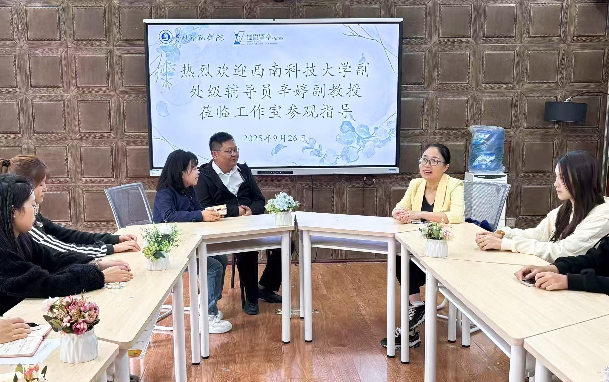 荏苒时光辅导员工作室,围绕特色辅导员队伍建设、专业型育人模式创新等核心内容开展参观指导与交流座谈。学工部副部长官鹏飞、工作室主持人申苒及工作室骨干成员全程参与。双方就新时代高校专业赋能育人工作的重点方向与实践路径展开深入探讨。