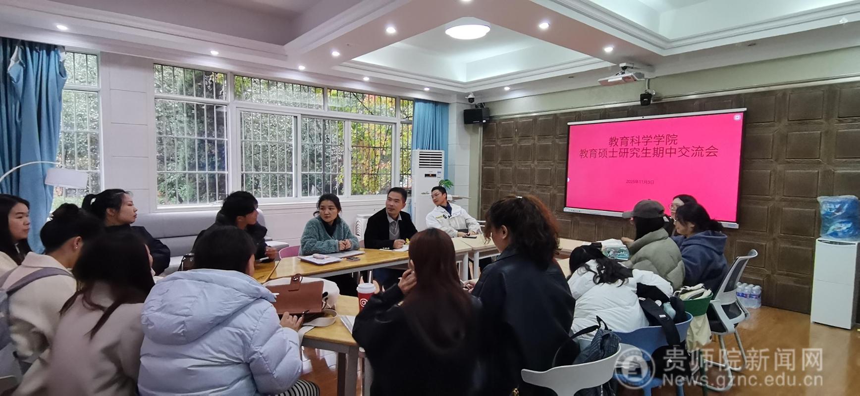 2025级教育硕士研究生期中交流会在学院会议室举行,副院长袁川、研究生辅导员鲁蓓蓓及全体2025级教育硕士研究生参会。