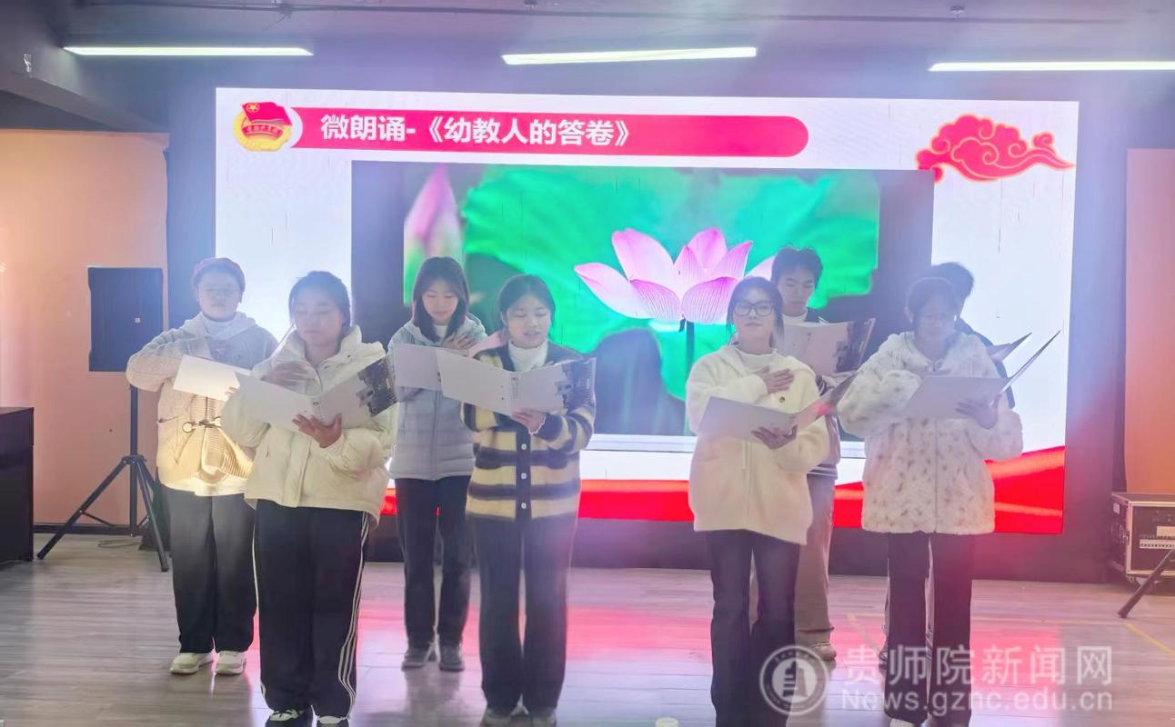 11月28日,成人色情 2024级学前教育一班团支部“赓续红色基因,守护幼教初心”主题团日活动在学校青年创新创业中心顺利开展。贵州师范学院党委常委、统战部部长、继续教育学院院长张婷、校团委副书记寇源、成人色情 党委副书记傅小芳、团委书记张源及辅导员申苒出席活动。活动以微团课学习为开篇,将红色教育与学前教育专业使命深度融合,通过理论学习、实景展示、荣誉分享、诵读明志等多元形式,展现了青年学子扎根幼教、担当使命的青春风采,推动红色基因与幼教初心在青年一代心中落地生根。