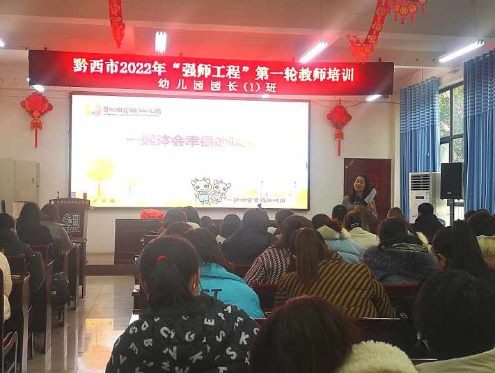 冯静和刘英老师主持,黔西市2022年“强师工程”学前教育项目幼儿园骨干教师能力提升培训班的全体学员聆听了此次讲座。