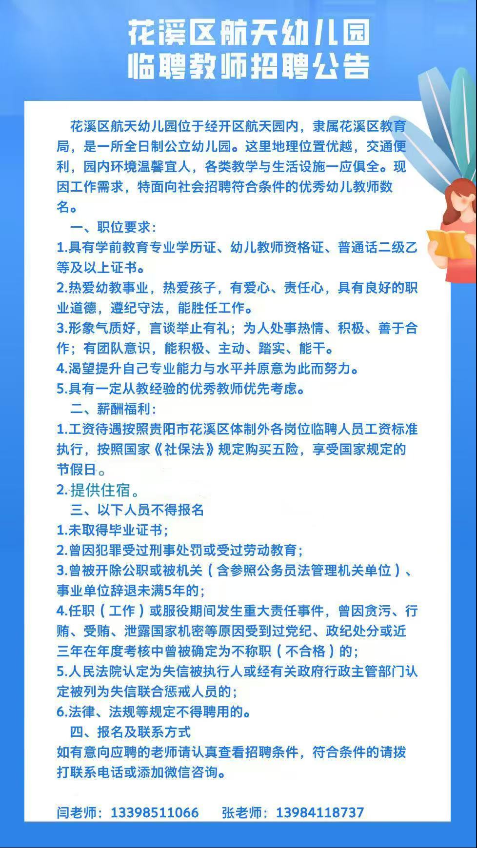花溪区航天幼儿园临聘教师招聘