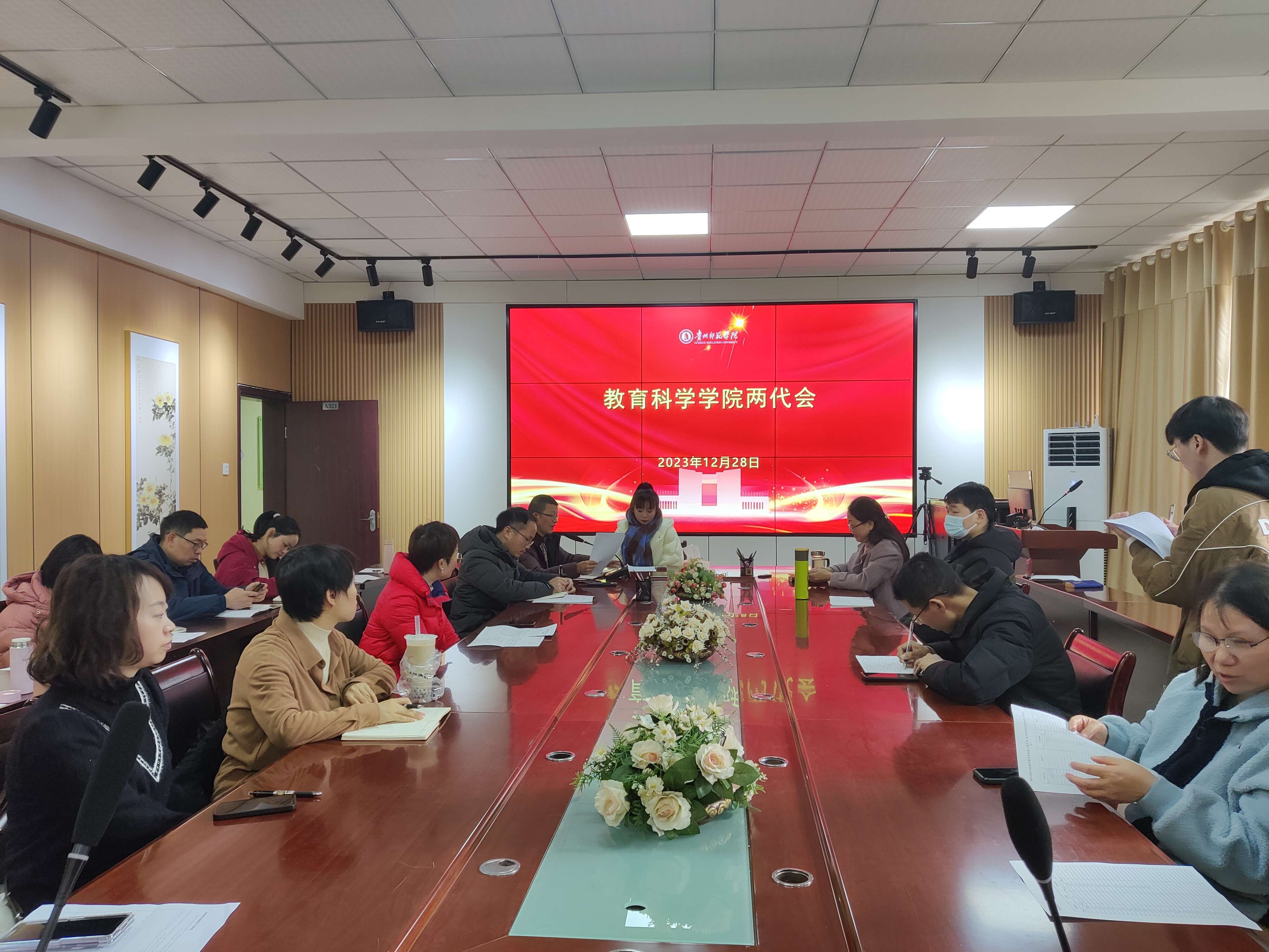 在逸夫楼三楼会议室召开教职工代表大会。学院党委书记肖湘萍、院长宋万琚、副院长黎平辉、副院长袁川以及全体教职工参加了此次会议。