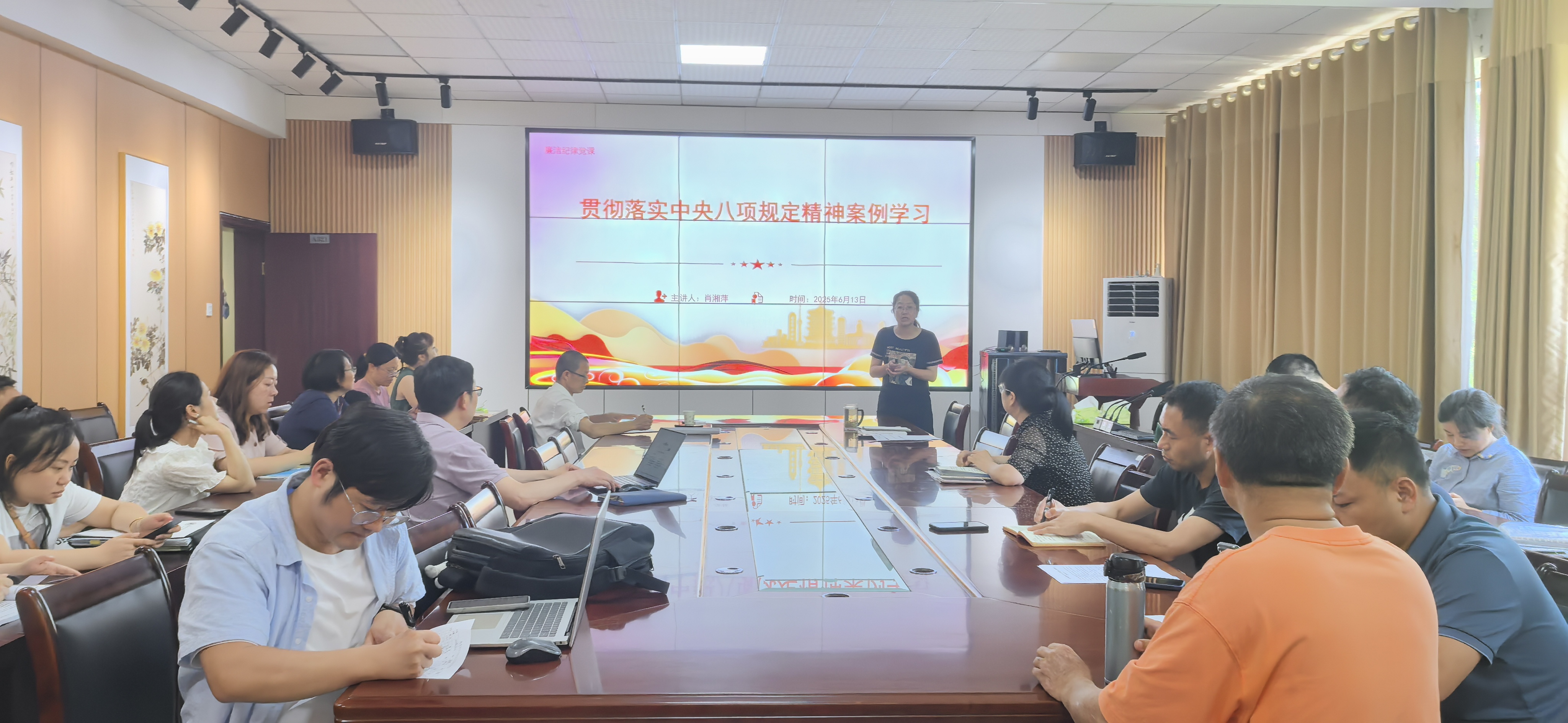 肖湘萍强调,中央八项规定是“长期有效的铁规矩、硬杠杠”,必须常抓不懈、久久为功。学院全体党员干部要持续深入学习贯彻习近平总书记重要指示精神和中央八项规定精神,以优良作风凝心聚力,把学习教育同学院中心工作紧密结合起来,推动高质量发展和党的建设不断取得新进展新成效。