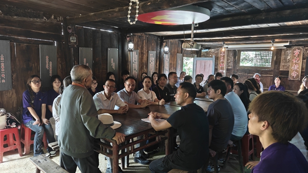 活动伊始,“七一勋章”获得者黄大发同志以自己的亲身经历为切入点,为党员们带来了一堂生动且接地气的党课。他深情回忆起带领乡亲们在绝壁上开凿“大发渠”的峥嵘岁月,36年筚路蓝缕、锲而不舍,哪怕遭遇无数次失败挫折,依然秉持“不破楼兰终不还”的信念。得知我们是贵州师范学院学生,他目光如炬:“教育是国家的根基,学生们,不仅要学习知识,更要学习立身处世之道——‘人而无信,不知其可’,唯有正直诚信,方能行稳致远。”这番质朴而饱含期许的话语,诠释着一名共产党员的初心与使命,令在场党员深受触动,也激励着同学们在以后的学习生活上,无论遇到何种艰难险阻,都要坚定信念,勇往直前。