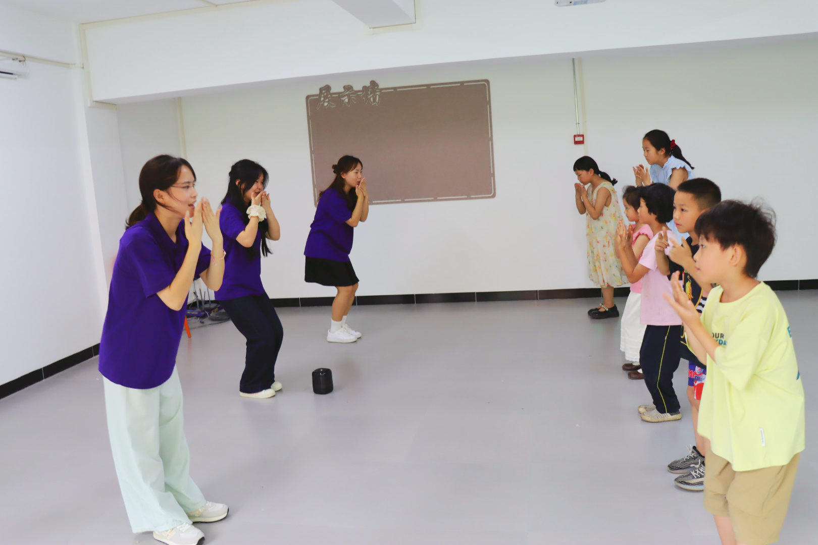 活动现场,团队舞蹈组志愿者成员化身“舞蹈老师”,带领二十余名随迁子女学跳儿童舞蹈《小花朵》。音乐响起,老师们先是示范了轻盈活泼的动作——抬手如花开,踮脚似蝶舞,可爱的舞姿瞬间吸引了孩子们的注意力。“小朋友们,跟着老师一起,像小花朵一样慢慢‘绽放’哦!”志愿者温柔的引导让孩子们放下拘谨,纷纷跟着节奏摆动身体。课堂上,老师们耐心分解每一个动作,手把手纠正孩子们的姿势,从手部姿态到脚步移动,细致又亲切。孩子们学得格外认真,有的小朋友虽然动作略显稚嫩,却始终带着灿烂的笑容,眼神里满是专注与兴奋。随着教学推进,孩子们逐渐掌握了舞蹈的核心动作,能跟着音乐完整跳完《小花朵》。当最后一个音符落下,孩子们齐声欢呼,现场掌声与笑声交织,氛围温暖而热烈。团队志愿者表示,舞蹈课让孩子们收获了自信与快乐,希望能多开展这类活动,延续这份美好。