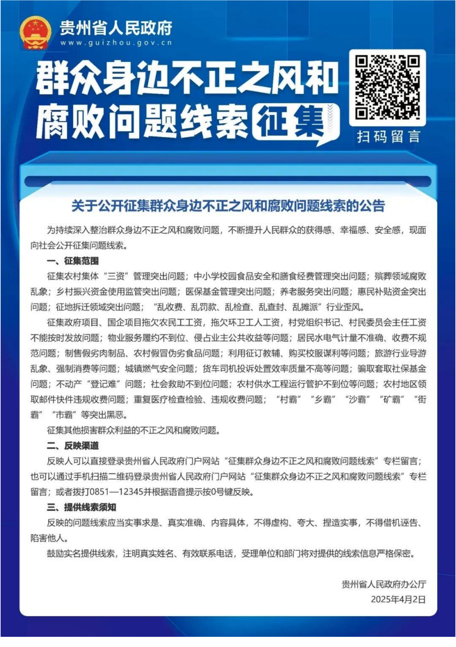 关于公开征集群众身边不正之风和腐败问题线索的公告