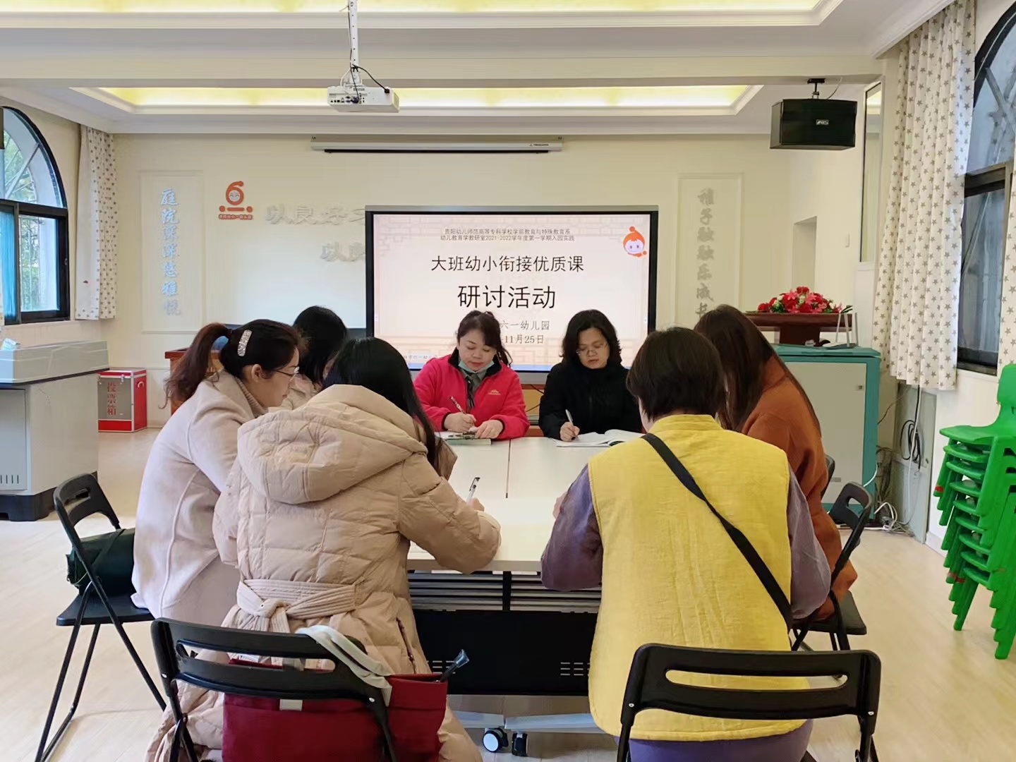 王雯颖老师与贵阳幼儿师范专科学校学前教育与特殊教育系学前教育专业四位老师一同观摩了贵阳市六一幼儿园大班语言领域活动《大象救小兔》,本次活动由郭芳老师执教,一同参与观摩和指导的还有贵阳市六一幼儿园保教主任邓倩老师。