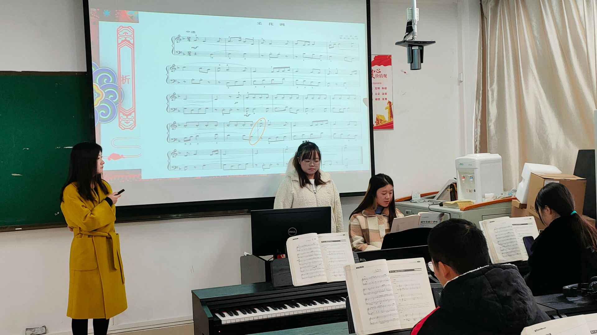 马慧慧老师在逸夫楼416教室进行了校级创新公开示范课,课程内容为钢琴3课程的复调弹奏及练习:《采花调》,学院领导和部分教师观摩了此次教学。
