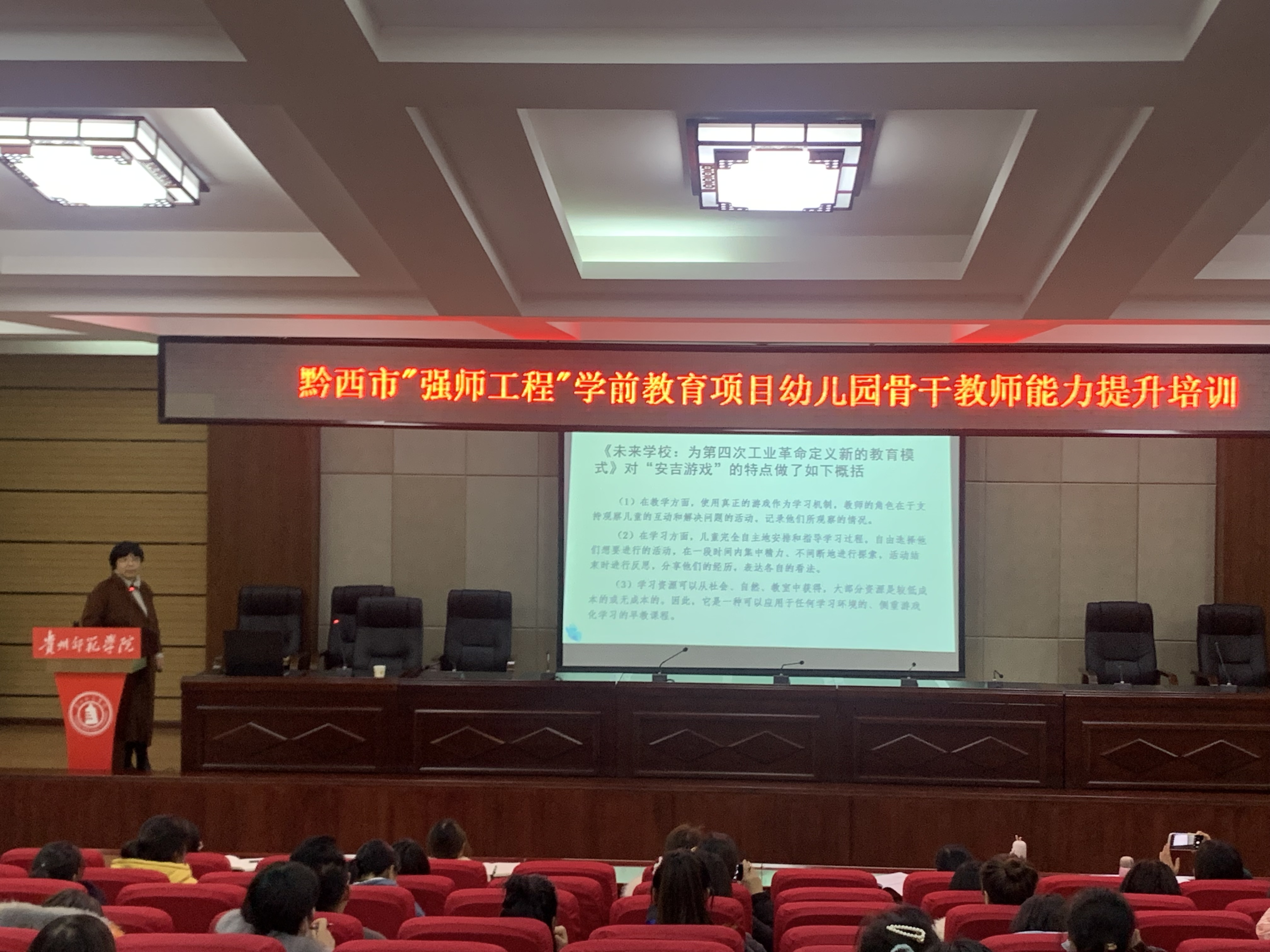 2022年1月17日晚,黔西市幼儿园骨干教师能力提升项目——“自主游戏解读”专题讲座在贵州师范学院道德讲堂举行,此次讲座由贵州省教育厅基础教育处谢旌处长亲临讲授。