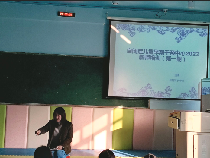 自闭症儿童早期干预中心第一期师资培训系列活动在逸夫楼628自闭症早期干预中心举行。此次培训由教科院特教系田婧老师授课,平台全体学生参与。此次教师培训秉承着“开展专项培训,提升教学水平”的主旨对平台老师进行培训,使老师们履职尽责,更好地胜任教学工作。
