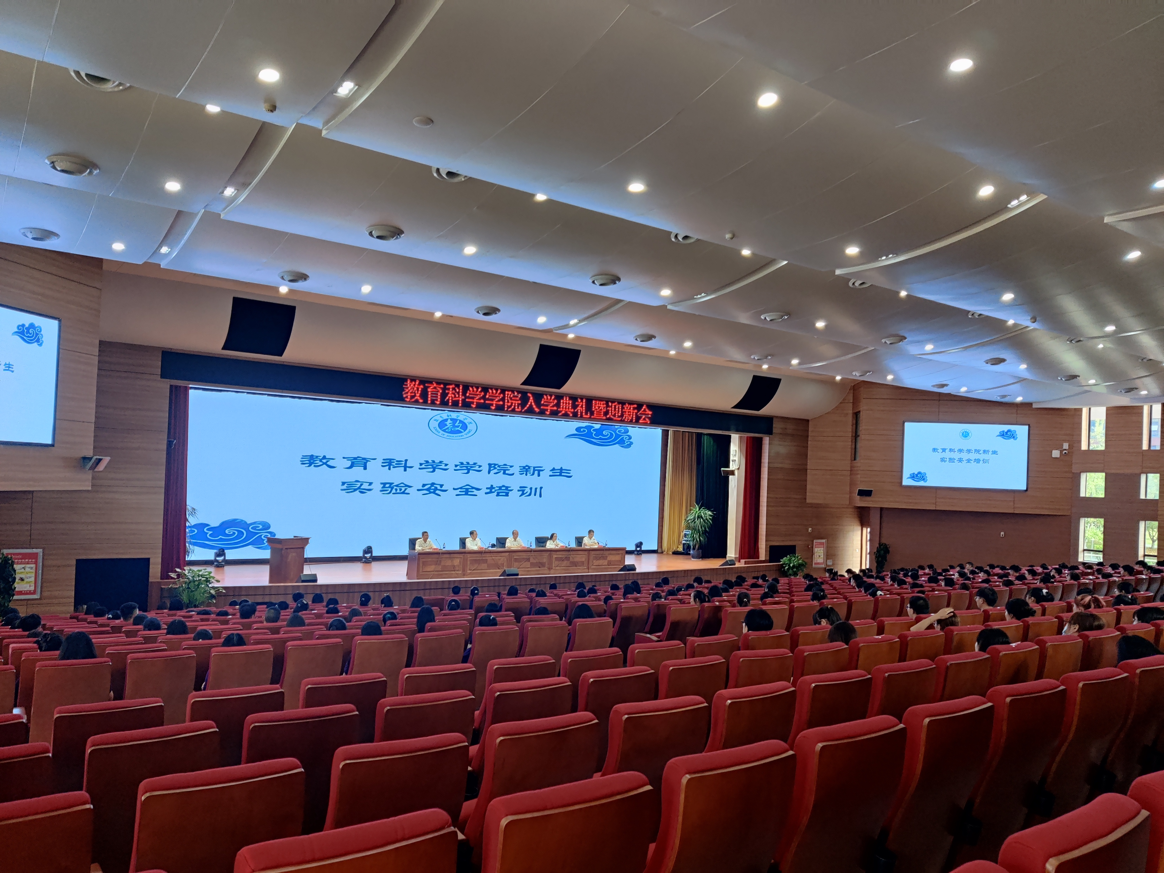在实训楼一楼大礼堂举行2021级新生实验室安全教育培训,学院党委书记彭祥友、院长刘红、副院长黎平辉、副院长袁川、组织员赵政、团委书记张源、各班辅导员以及2021级四个专业的新生参与了本次培训,培训由刘红院长主讲。
