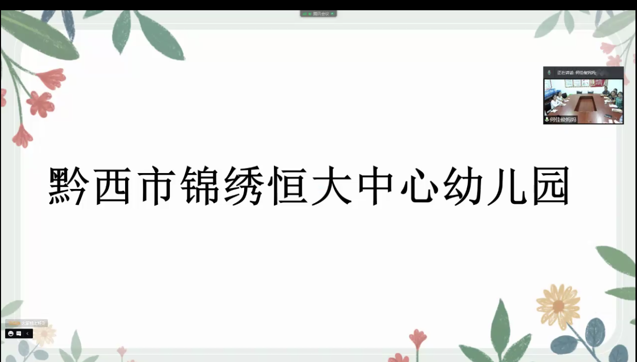 与黔西市“锦绣恒大中心幼儿园”一起召开了远程网络指导会议。副院长黎平辉及教师郑玉莲、李建年、王小为、陈泽婧、冯静等,通过网络远程的方式对黔西市“锦绣恒大中心幼儿园”的“升示”工作及其未来发展进行线上指导。