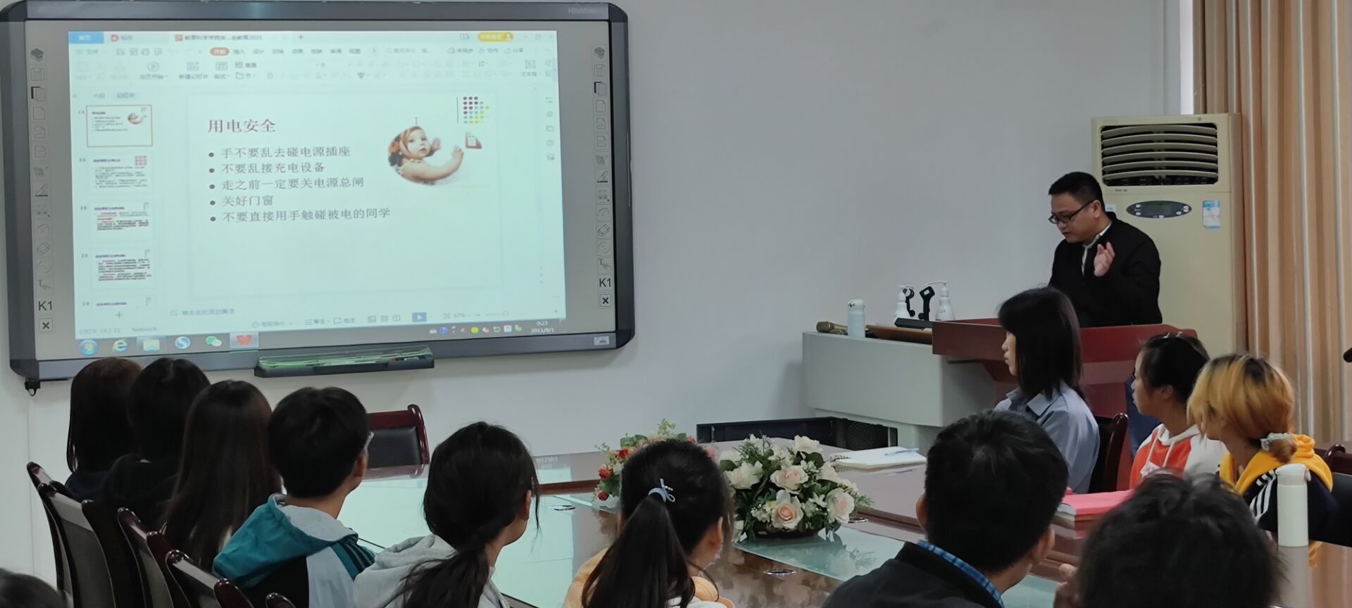 唐辉一老师在逸夫楼321会议室对大一至大三的班级干部进行了实验室安全教育培训,涉及到应用心理学、学前教育、特殊教育和艺术教育四个专业的学生。