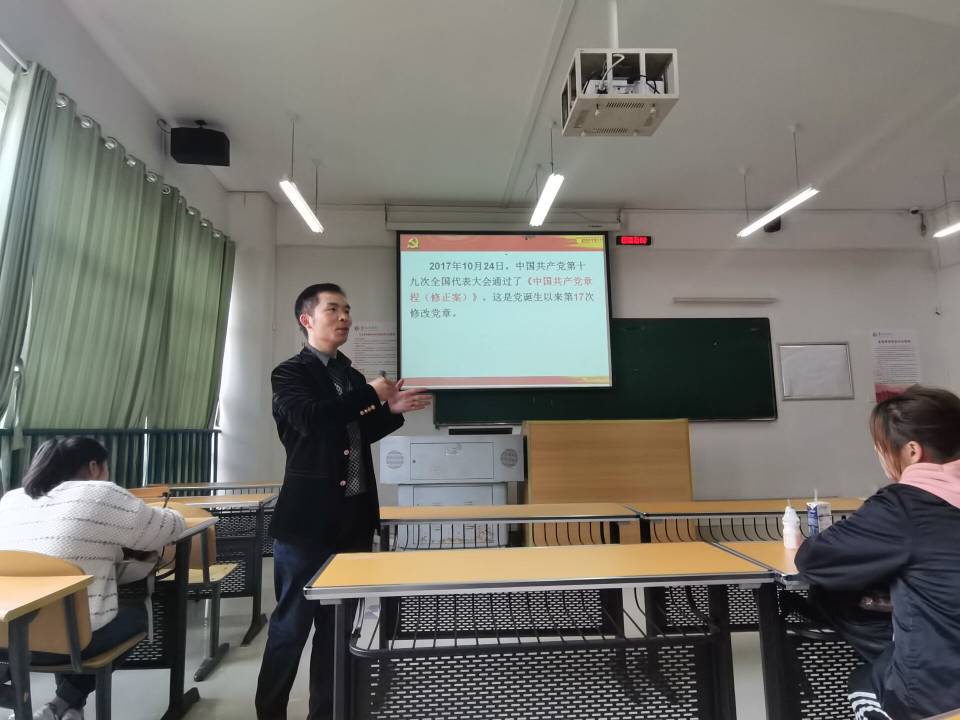 第51期入党积极分子培训在逸夫楼504教室进行《中国共产党党章发展史》的学习,学院副院长袁川教师上专题党课。