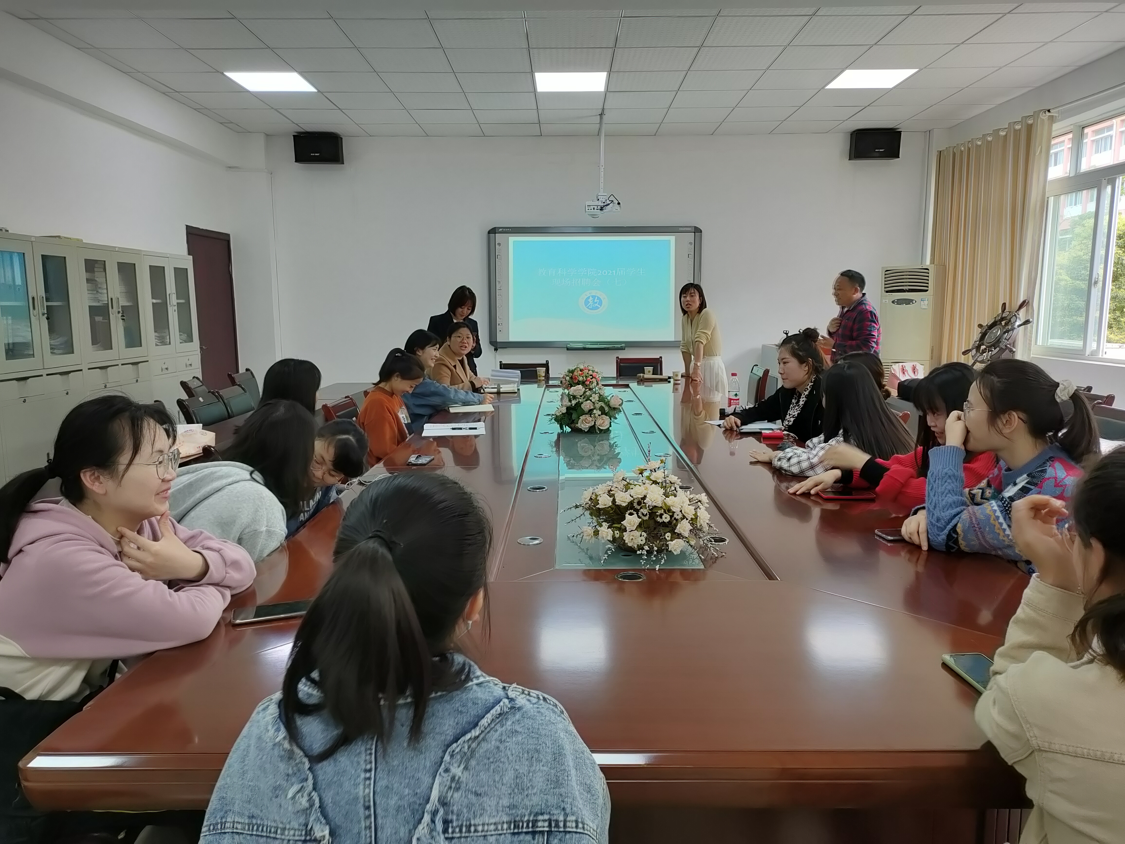 在逸夫楼321学院会议室举行2021级毕业生第七场招聘会,此次招聘单位为贵州书凡教育咨询有限责任公司。招聘会由学院党委副书记傅小芳主持,2017级学前教育专业的全体同学参加了此次招聘会。