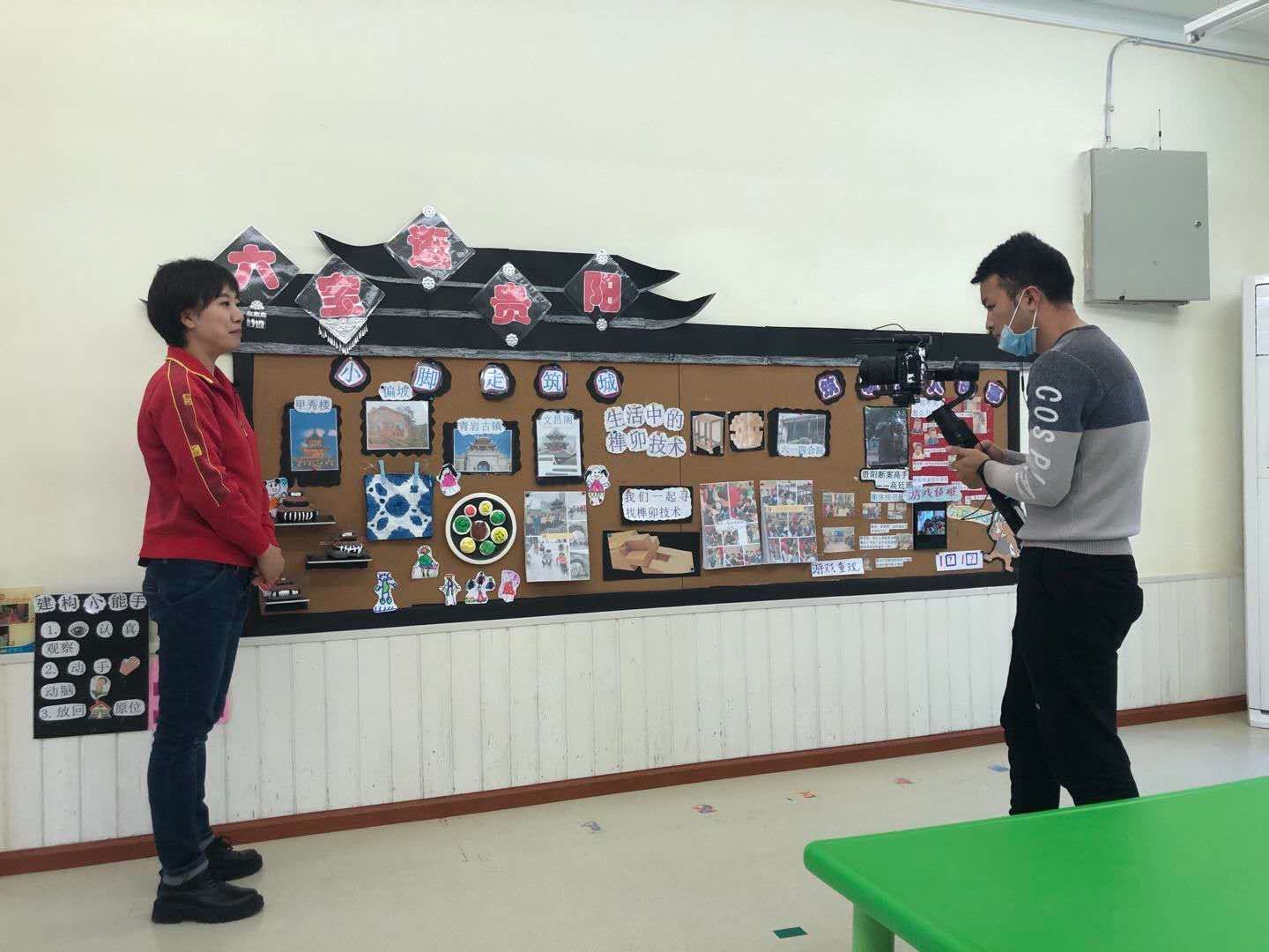 《六宝逛贵阳》是以六一幼儿园吉祥物“六宝”作为人物主线进行一系列的传统文化课程开发。本次录制任务由中班组郭芳、柴利老师完成,两位老师围绕环境创设及区域活动展开,对中班主题活动的环境创设进行了详细的介绍,包含课程理念、主题墙的设计、特色区域活动的设置、区角材料的投放的功能以及如何提升幼儿在活动中的创造性、参与性等,两位老师分别介绍了贵阳的名胜古迹、贵阳美景、建筑结构及贵阳的风土人情等,展示了从老贵阳到当今贵阳翻天覆地的变化,录制过程顺利,效果良好。本次课程视频资源将作为《六宝逛贵阳》的过程性资料,不但突出班本主题内容,还极大地丰富了贵阳市六一幼儿园园本课程资源。