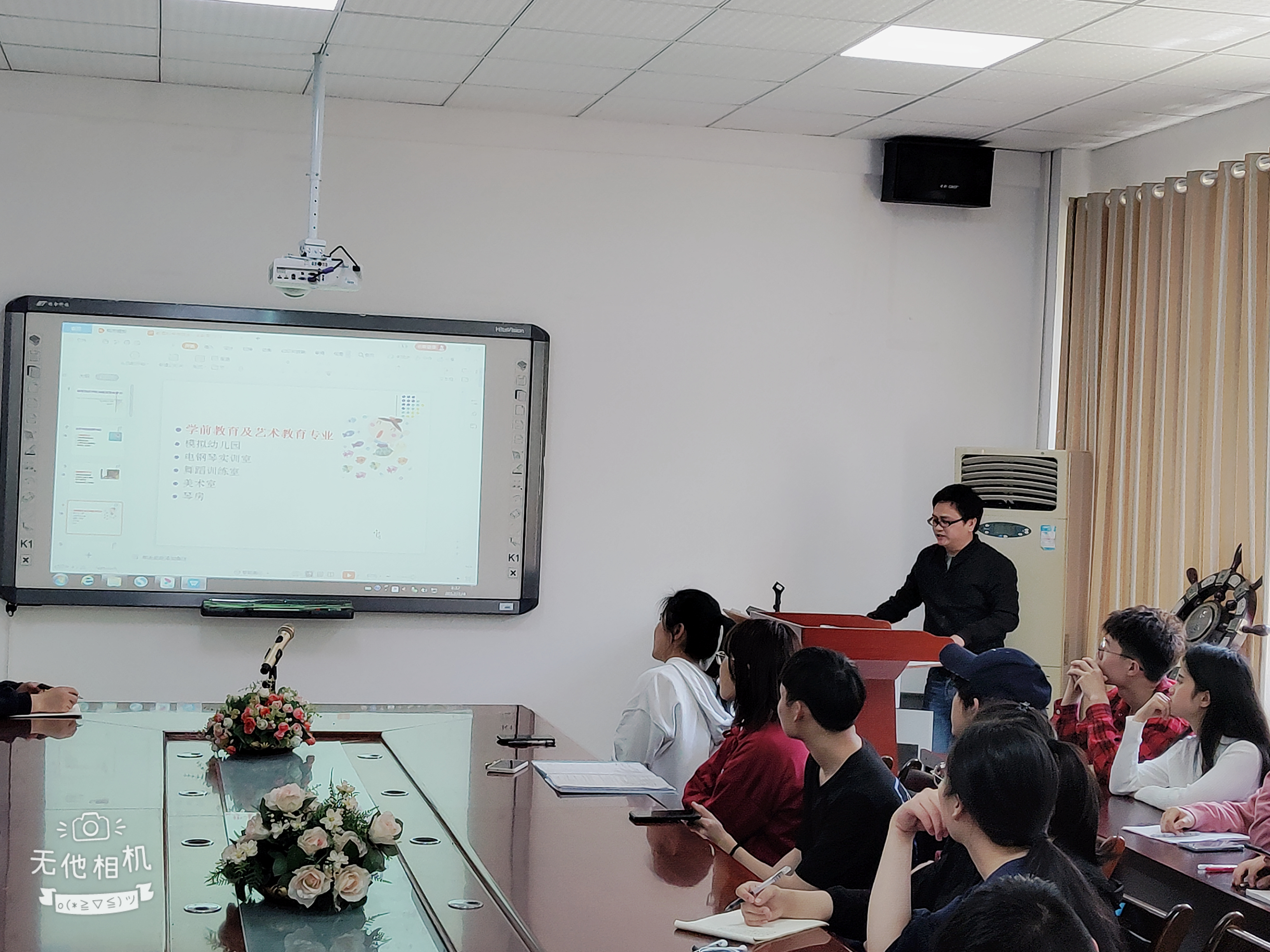 唐辉一老师在逸夫楼321会议室对应用心理学系、学前教育系、特殊教育系、艺术教育系大一至大三的班级干部进行实验安全教育培训。