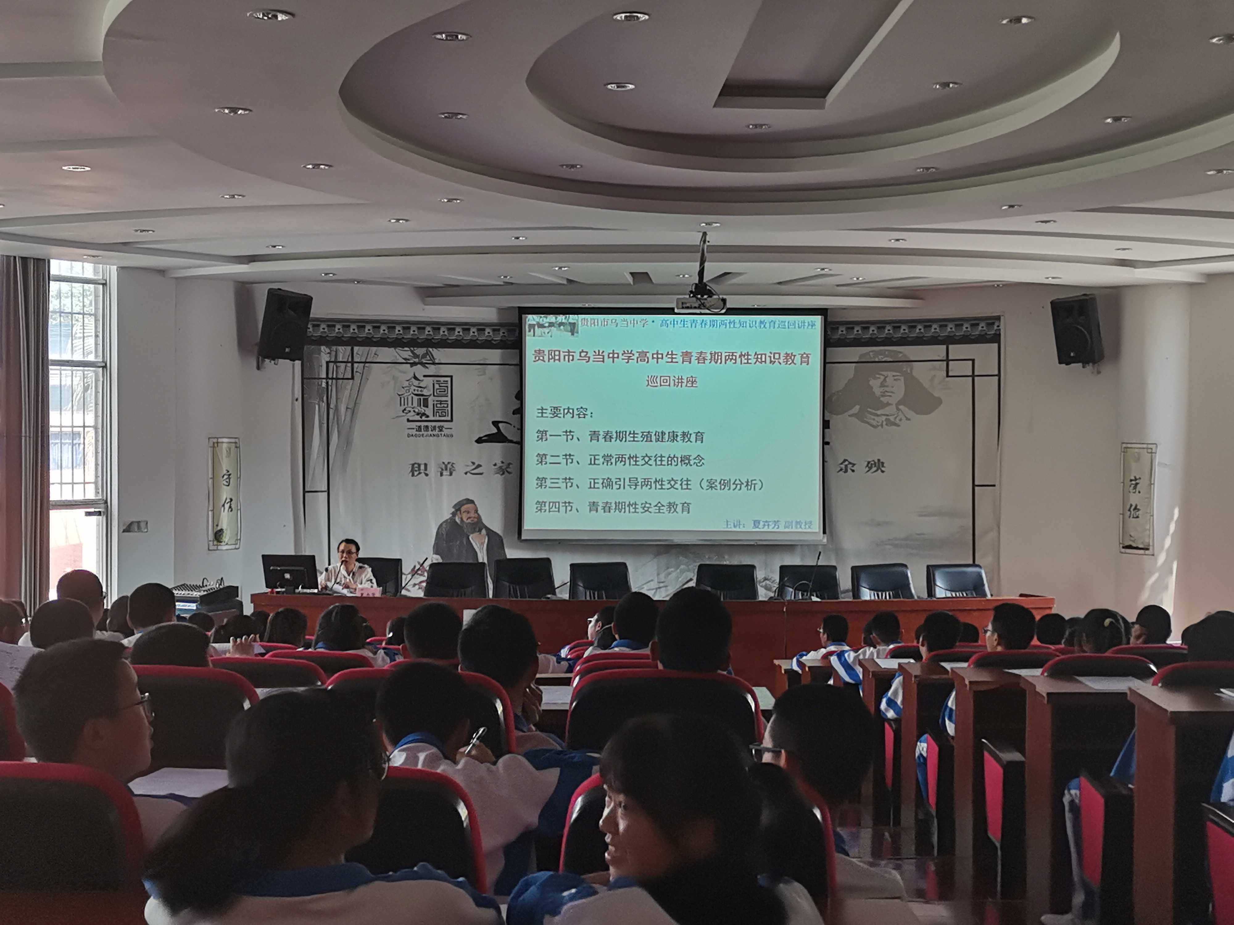 自2020年12月4日夏卉芳对贵阳市乌当中学班主任及学生进行性健康教育提升培训以来,得到乌当中学肖文渊校长、罗安伟副校长等领导、老师与学生的一致肯定。为了进一步全面正确引导高中生认识两性知识,促进高中生理性对待自我萌芽的情感,让学生拥有正常的同学情谊,健康地学习和成长,乌当中学邀请夏卉芳副教授进行“高中生青春期两性知识教育”巡回讲座,并聘夏卉芳为“高中生青春期两性健康教育”讲师。
