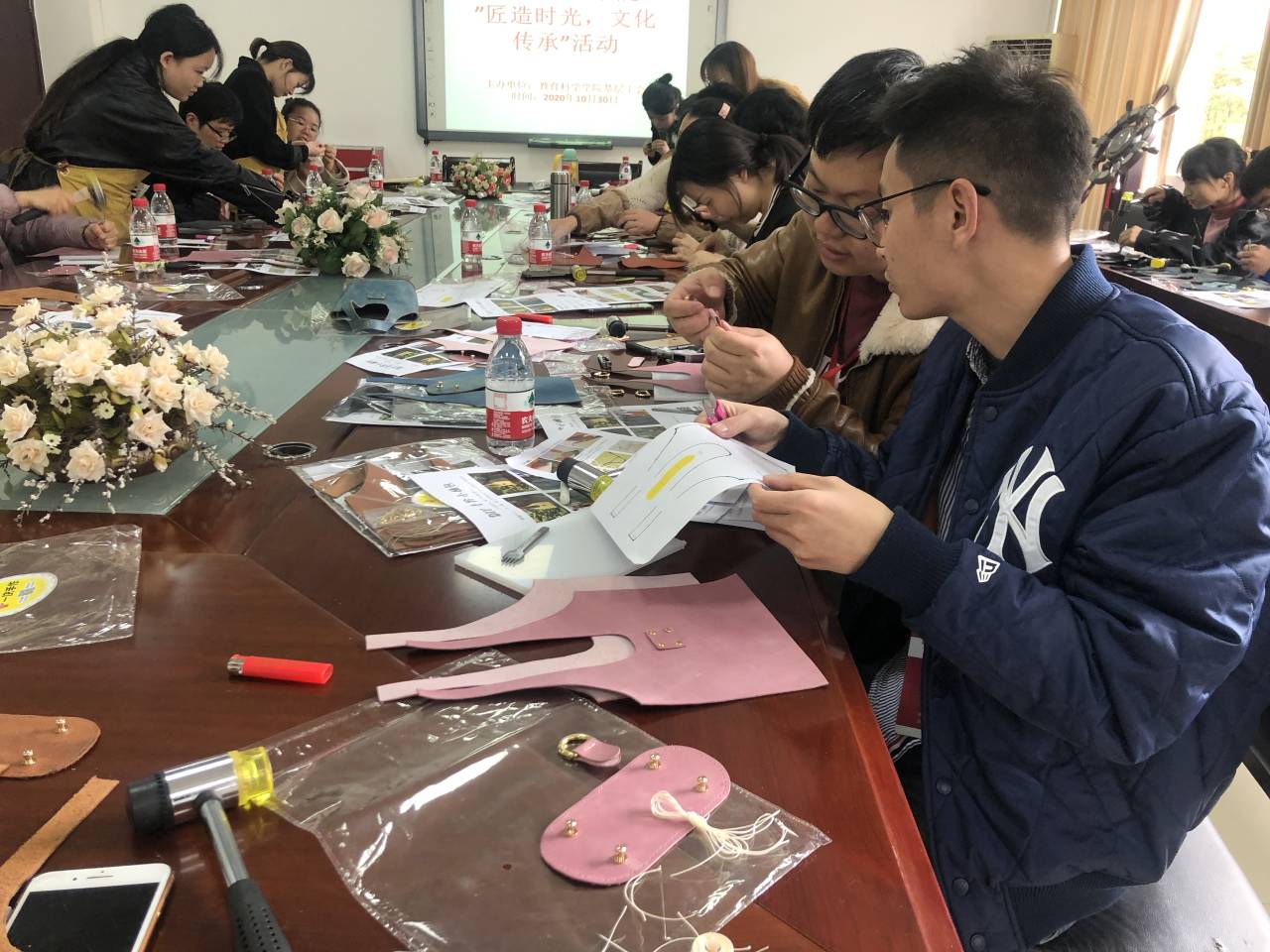 教职工制作皮具中