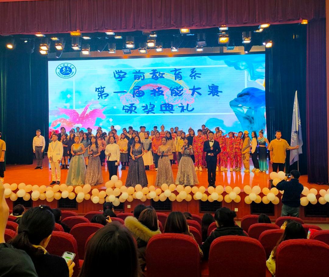 为适应新形势下的教学改革,加强我系学生的基本功训练,提升教学技能,我系特举办学生技能大赛。2020年12月14日星期一18:00,学前教育系第一届技能大赛颁奖典礼在逸夫楼演播厅隆重举行,学前教育系全体师生以及院领导均到场参加。