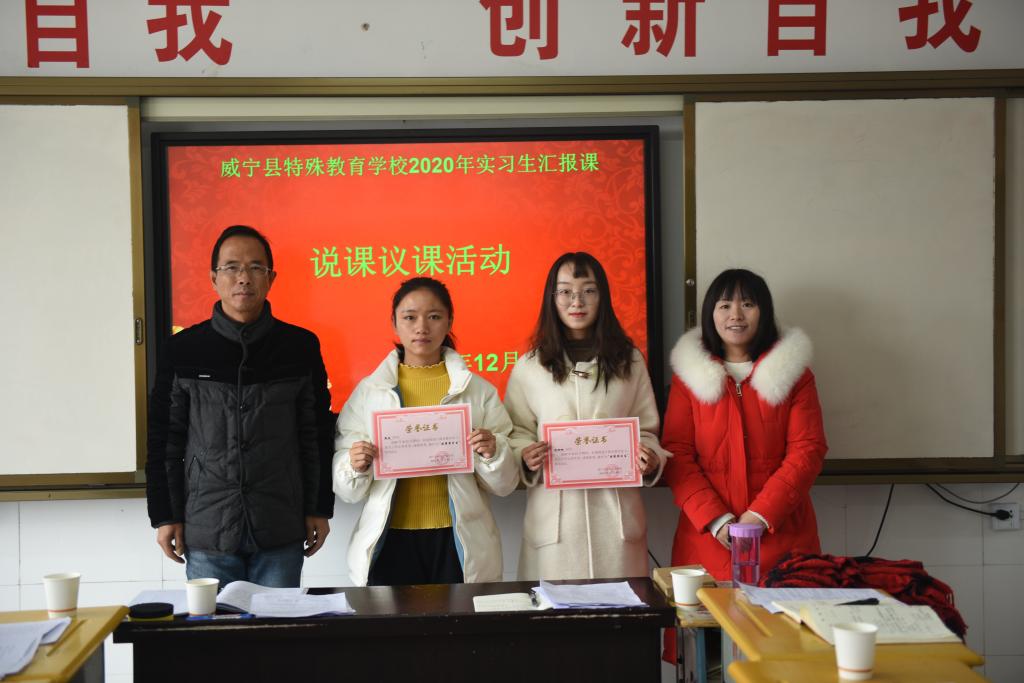 特殊教育系杨娟老师赴威宁彝族回族苗族自治县特殊教育学校参加2020年实习生汇报课及说课议课活动。威宁特殊教育学校副校长李育学,教务主任吕伟,培智部负责人黄朝丽,培智语文教研组长徐俊,实习指导老师顾艳情、王菊芳及部分学科教师参加了此次活动。