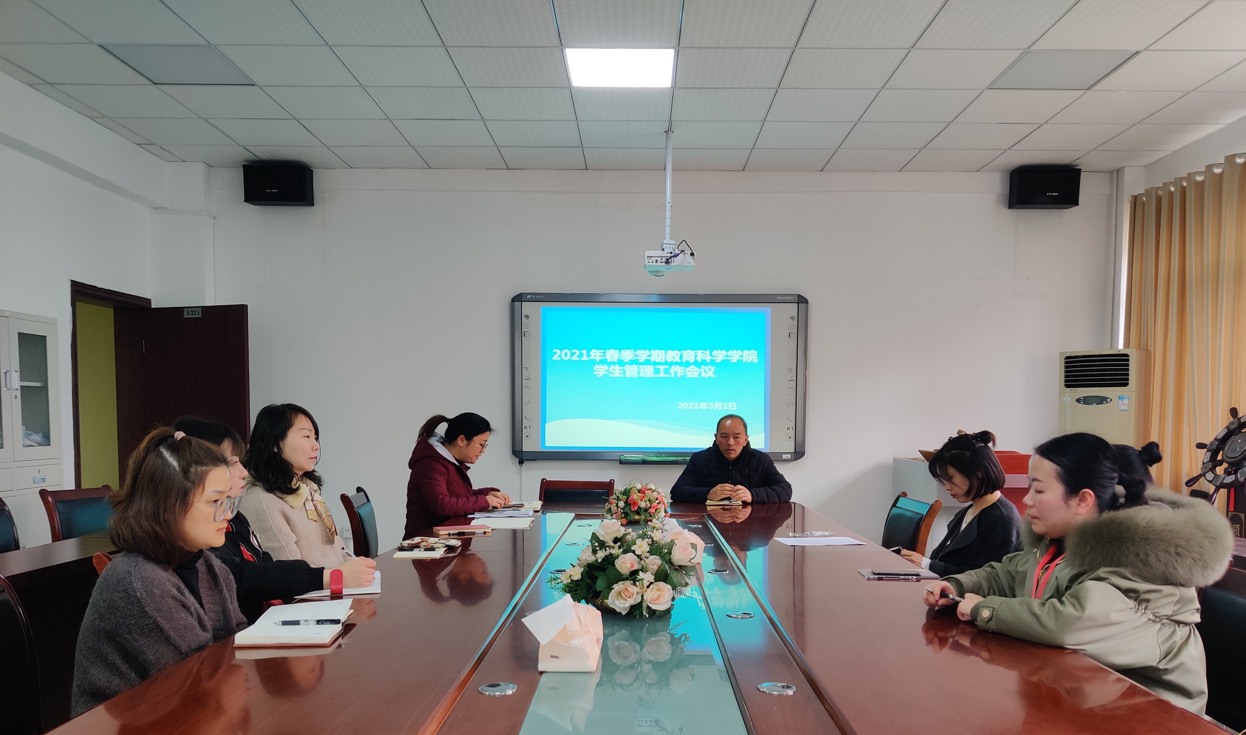 在逸夫楼会议室召开2021年春季学期学生管理工作会议。学院党委书记彭祥友、副书记傅小芳、团委负责人、全体专兼职辅导员参加会议,会议由傅小芳主持。