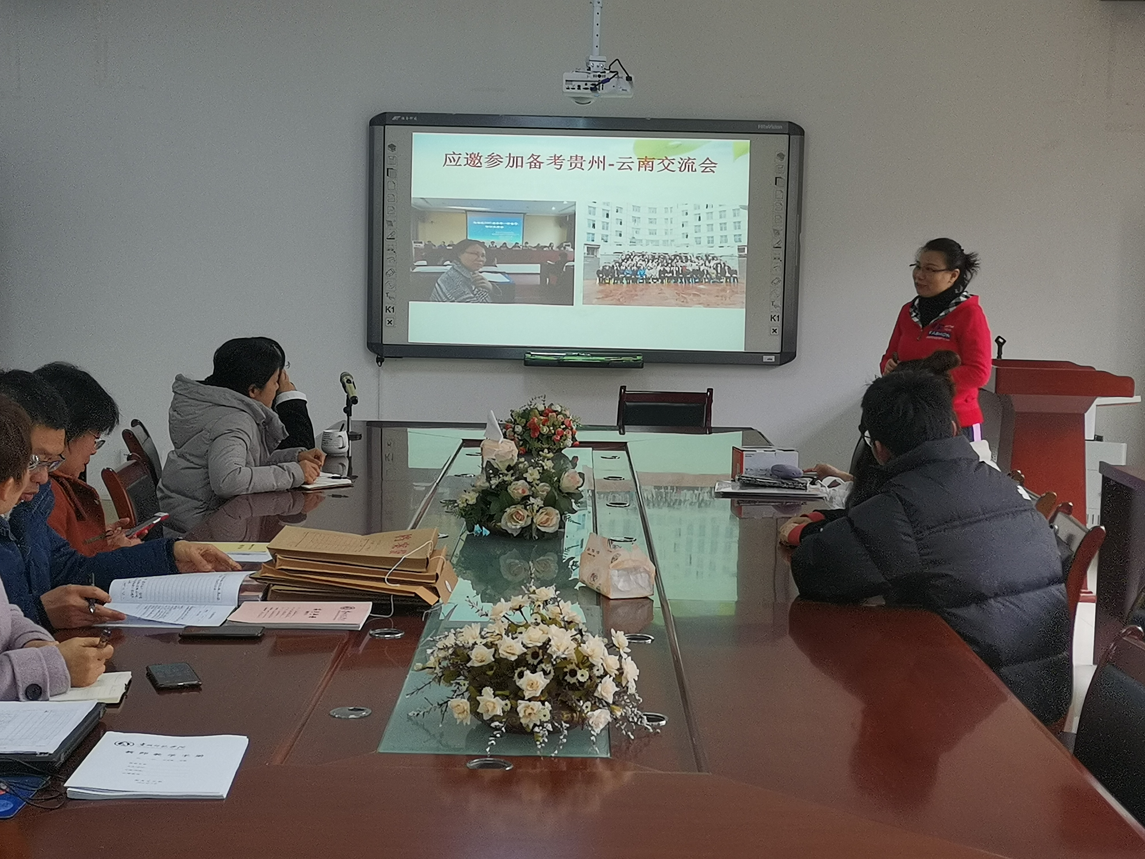会上,夏卉芳老师大家首先介绍了自己参与跟岗的乌当中学的基本情况,以中学生物理课为例向大家介绍“同课异构”在实际中是如何运用的。夏老师将自己的心得与收获生动形象的介绍给了大家,并鼓励年轻教师积极参与跟岗实践,提升教学工作能力。