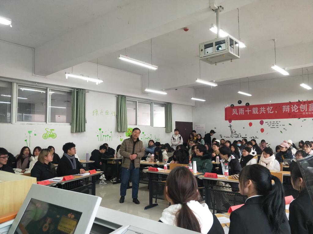 应用心理学系举行了“风雨十载共忆,辩论创赢未来”的辩论赛活动。参加此次辩论赛的成员均来自于2020级、2019级、2018级应用心理学专业的学生,辩论赛分为初赛和决赛两个阶段,评委老师由全体心理系老师分别担任。初赛于12月17日早上8:30在逸夫楼601和602教室举行,其中2018级应用心理学(二班)对阵2019级应用心理学班,辩题为 “性教育课程是否应当作为大学生的必修课”,2018级应用心理学(一班)对阵2020级应用心理学班,辩题为“网络是否使人与人之间更亲近”,进过激烈角逐,2018级应用心理学(一班)与2019级应用心理学班进入决赛,并于12月21日早上9:30在宁静楼152教室举行展开,辩题为“高考是择校重要还是选择专业重要”。在决赛过程中,双方辩手都显示出过人的睿智与幽默。精辟的论点、有力的论据、机敏的反应、默契的配合赢得了在场评委和观众阵阵掌声,给观众留下了深刻印象。比赛最后, 2018级应用心理学(一班)夺得桂冠,侯沛羽、敖灿丽、林子萱三位同学获得“最佳辩手”的荣誉称号。