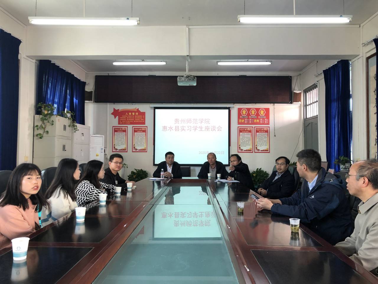 党委书记彭祥友和副院长黎平辉、数学与大数据学院教师陈松良教授和欧阳建新博士、教科院科研助理吴桂桃等一行5人,在惠水县教育局罗科长的陪同下,先后到惠水四中、惠水五中、惠水六中、惠水县中等职业技术学校、摆金中学、岗度中学等实习单位看望贵州师范学院实习生。