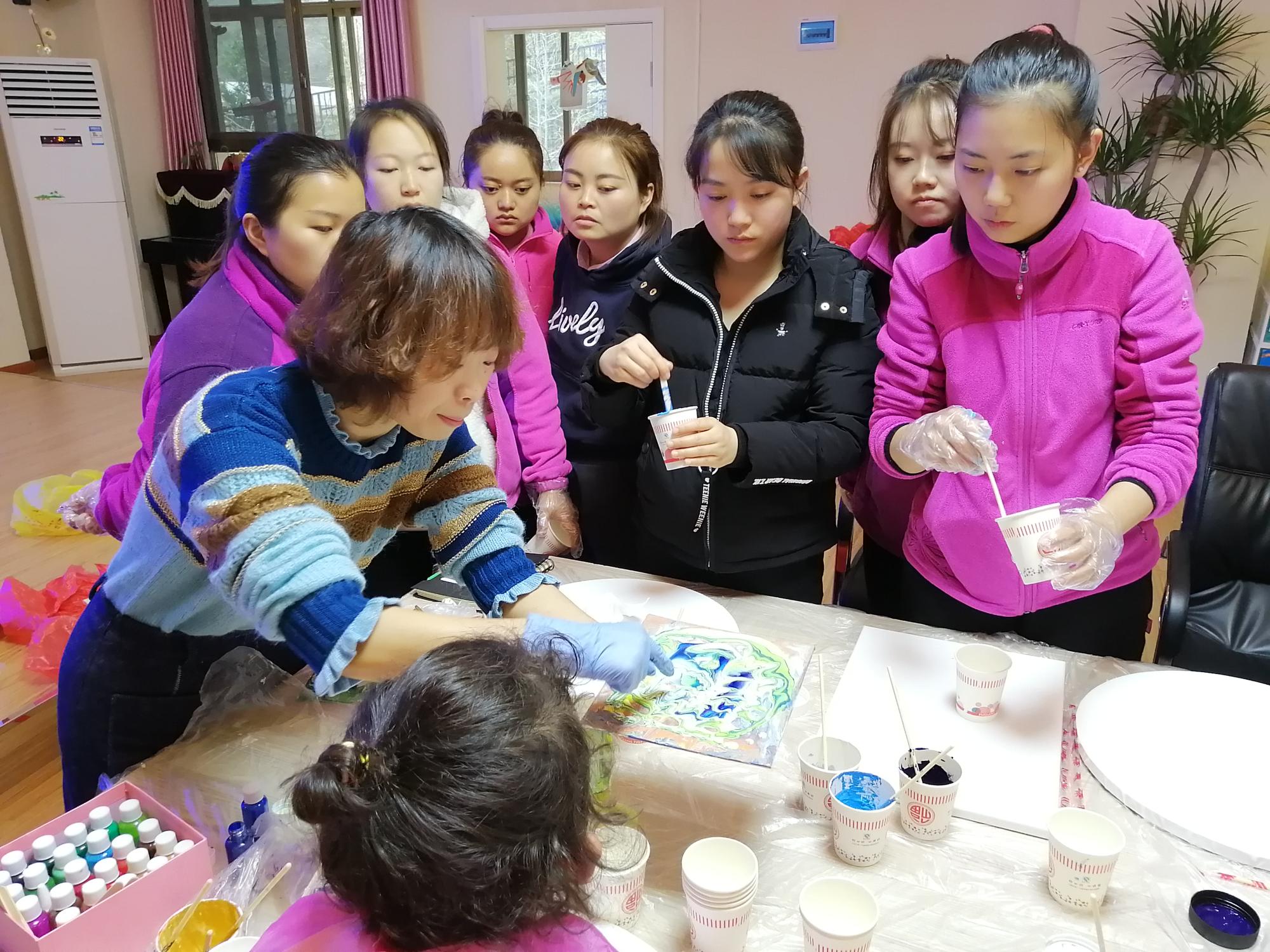 申利丽副教授到南明区后巢中心幼儿园为幼儿园教师进行了《创意流体画》培训。