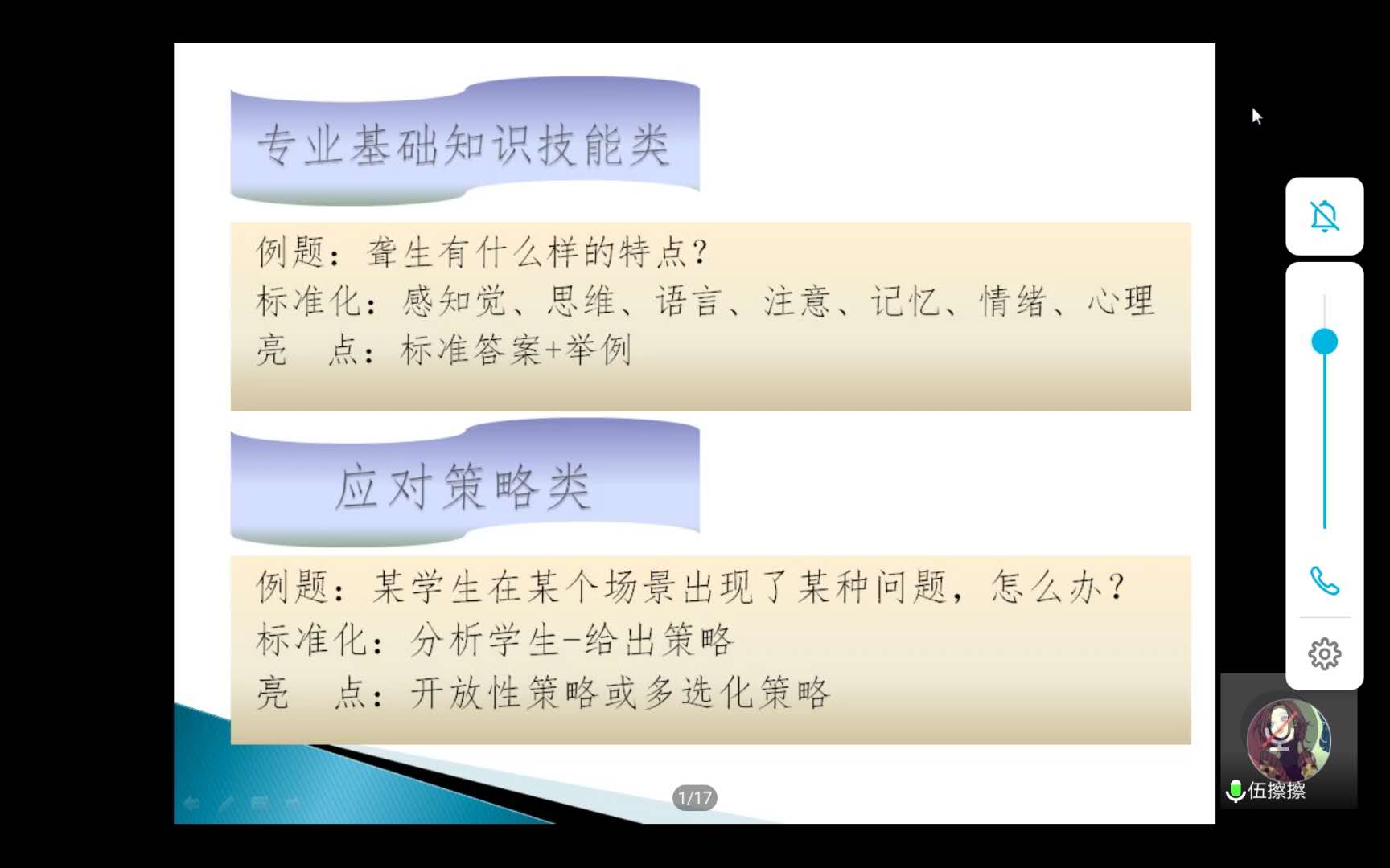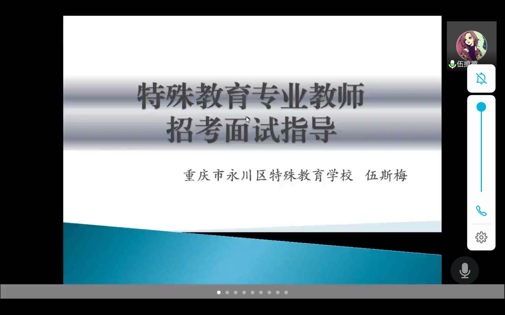特殊教育专业毕业班学生进行就业技能专项指导。本次特殊教育招考面试技巧的指导在通过网络进行,分享会由特殊教育系主任杨娟主持。