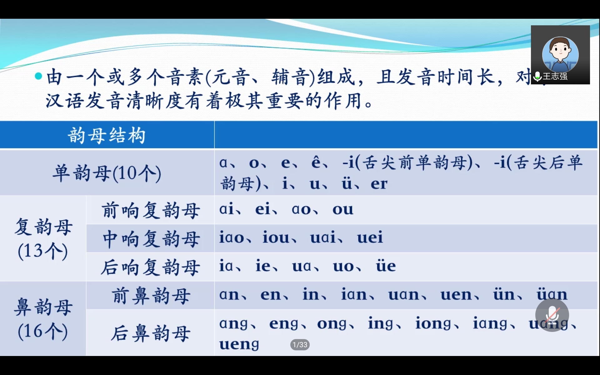 王老师介绍汉语韵母的结构