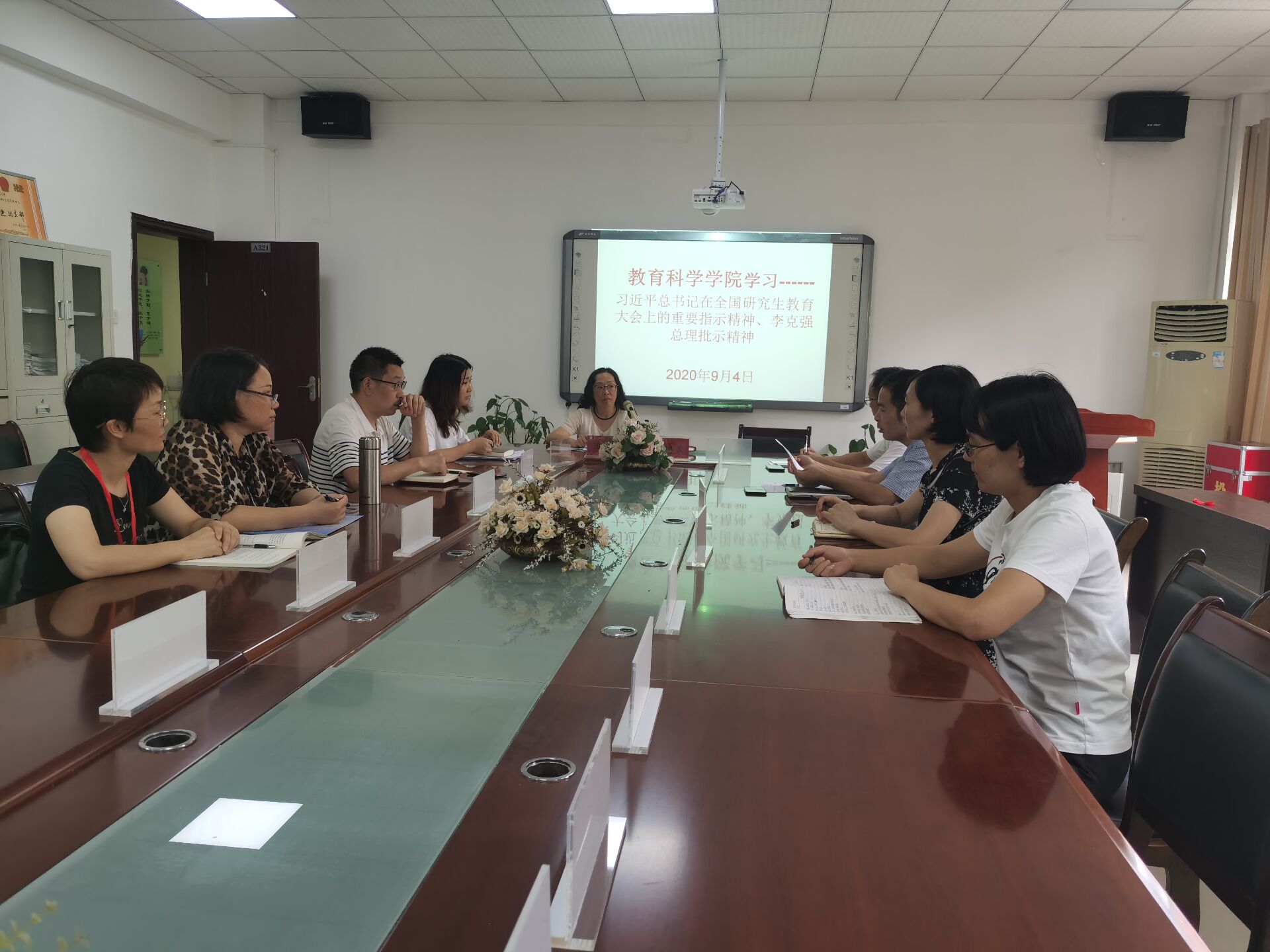 会上,副院长袁川传达了习近平总书记在全国研究生教育会议上的重要指示精神、李克强总理重要批示精神和孙春兰副总理的重要讲话精神;院长刘红介绍了学院当前硕士点建设的基本情况及存在问题,并对各位承担指导任务的硕士生导师提出要求,希望他们在指导学生的过程中要全面贯彻党的教育方针,落实立德树人的根本任务,严格要求自己和学生,把好研究生教育质量关。