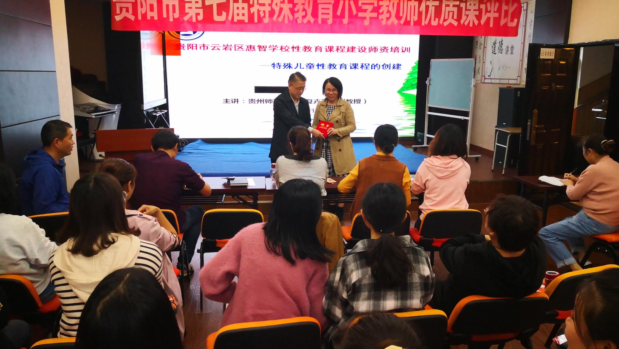 讲座开始前,梁波颁发了聘请夏卉芳作为贵阳市云岩区惠智学校的性教育师资培训以及课程建设指导专家的聘书。