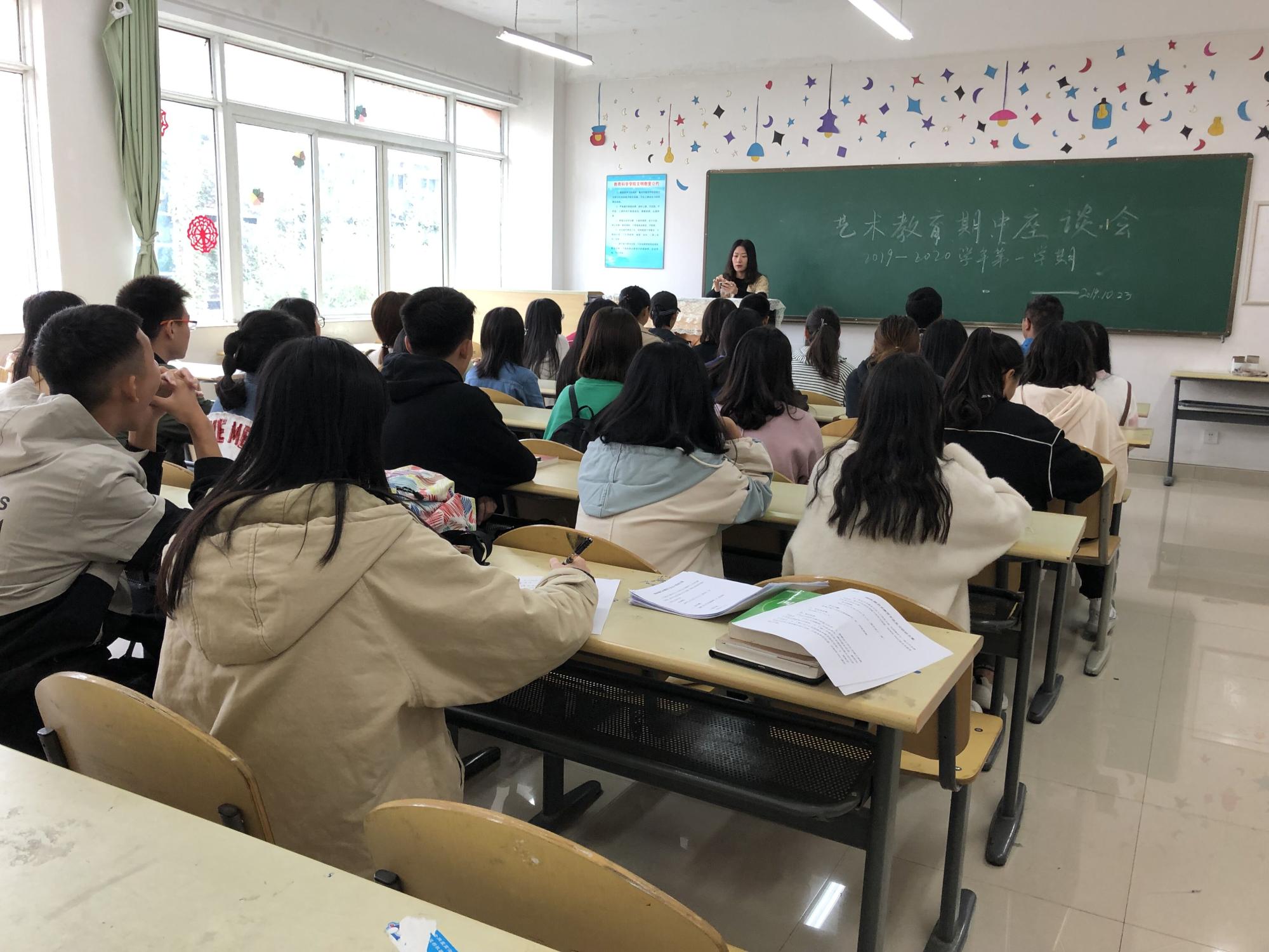 艺术教育系系主任马慧慧以及2018级、2019级艺术教育专业学生代表30人,本次座谈会由马慧慧主持。