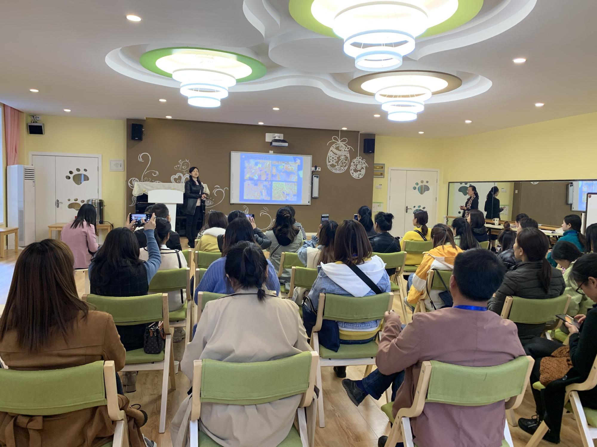 贵阳市第二实验幼儿园观摩活动由学前教育专业老师何玉红、刘英带队。根据流程安排,首先,学员们分为三组在第二实验幼儿园教师的带领下“看文化”,了解园所文化故事,办园理念、办园宗旨、办园目标等内容;其次,学员们在三楼多功能教室“听文化”,聆听了邓润林园长的《我园家文化的实践与研究》的专题讲座,邓园长从文化与课程的关系,如何利用课题建设本园文化,实验二幼家文化建设中遇到的困难及解决路径给学员们做讲解;最后学员们与园长及幼儿园多位教师就园所发展中遇到的问题进行了交流分享。