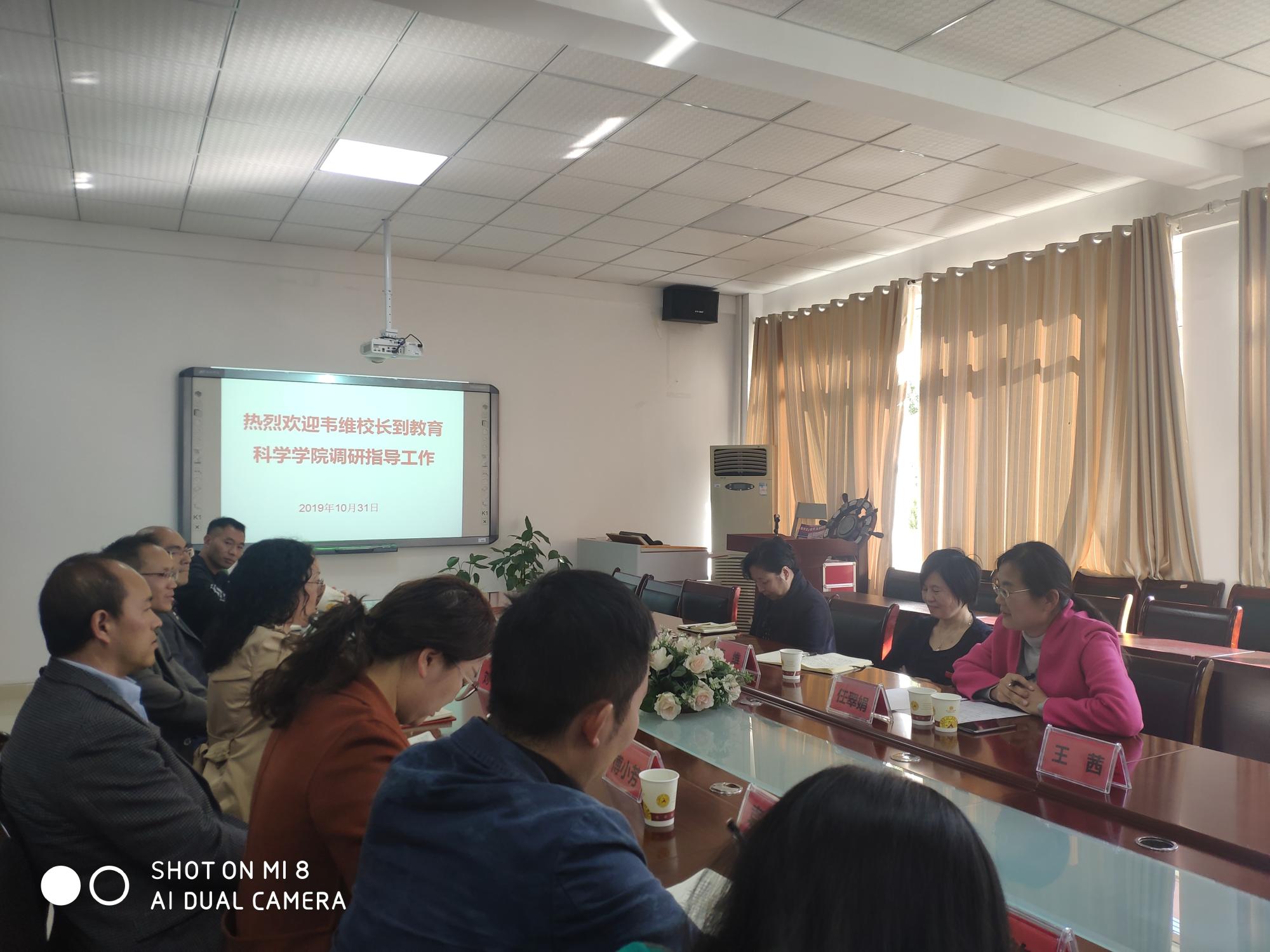 为全面推进学校开展“不忘初心、牢记使命”主题教育走向深入,增强守初心、担使命的思想自觉和行动自觉,10月31日下午3点,校长韦维带领科研处处长王平瑞、教务处副处长任翠娟、党政办公室秘书科科长郭亚到教育学科学院调研指导。根据学校主题教育工作安排,此次调研以“双一流”建设为主线,重点了解教学单位在教学、科研、学科建设、人才培养等工作中的难点问题,为检视问题、整改落实提供重要依据。成人色情