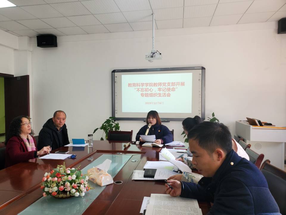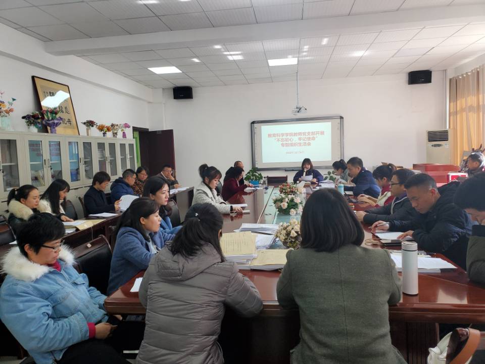 教师党支部全体党员在逸夫楼A321会议室召开了“不忘初心、牢记使命”专题组织生活会,此次会议由教师党支部书记李琴主持。
