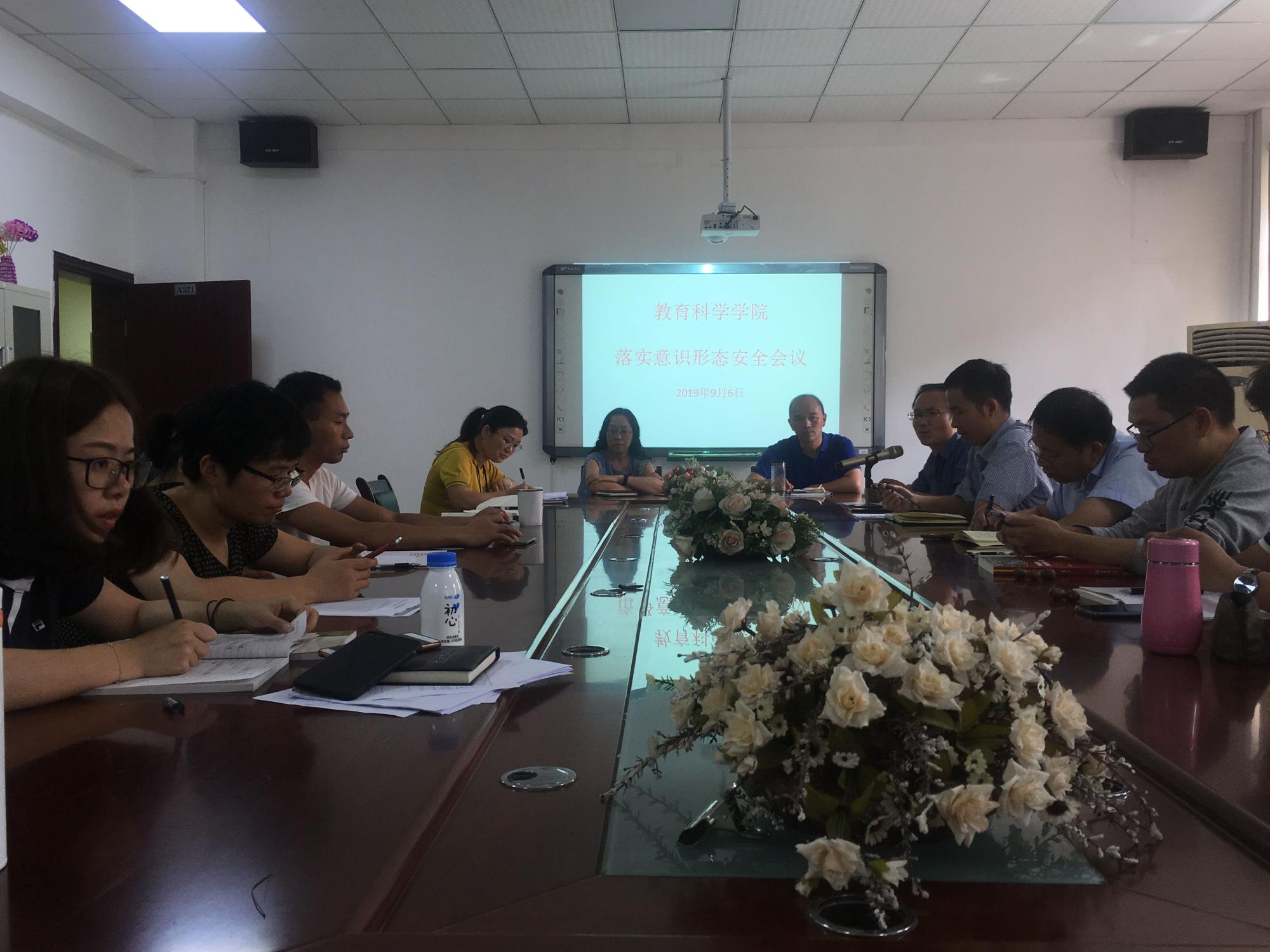 在逸夫楼3楼会议室召开落实意识形态安全会议。全院教师到场参加,会议由院长刘红主持。