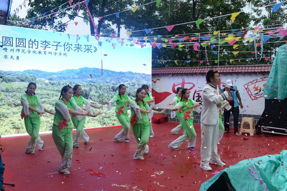 带来的《我爱你,中国》手语表演,更是展现了这支社会实践服务团队的爱国情怀。汇演还有大众喜闻乐见的快板节目,全面介绍了腊脚村现在的发展状况,腊脚村主要以培育李子、猕猴桃等为主要经济来源,体现了腊脚村的发展离不开国家政策的支持,离不开村民的共同努力。