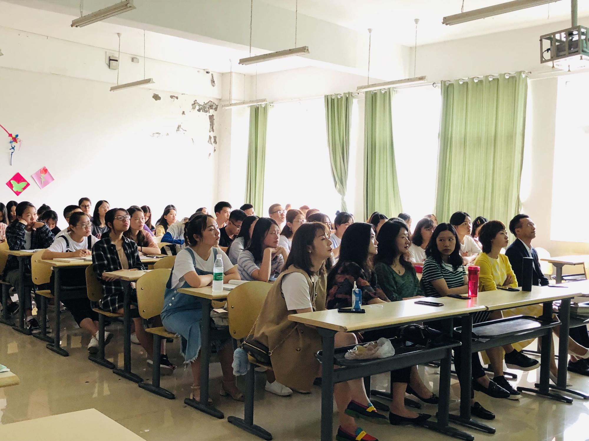 艺术教育系师生齐聚一堂,在逸夫楼604教室进行了本学期见习总结大会,系主任马慧慧以及申利丽、张怡、龙雪梅、莫太极、主懿芹参加了会议。